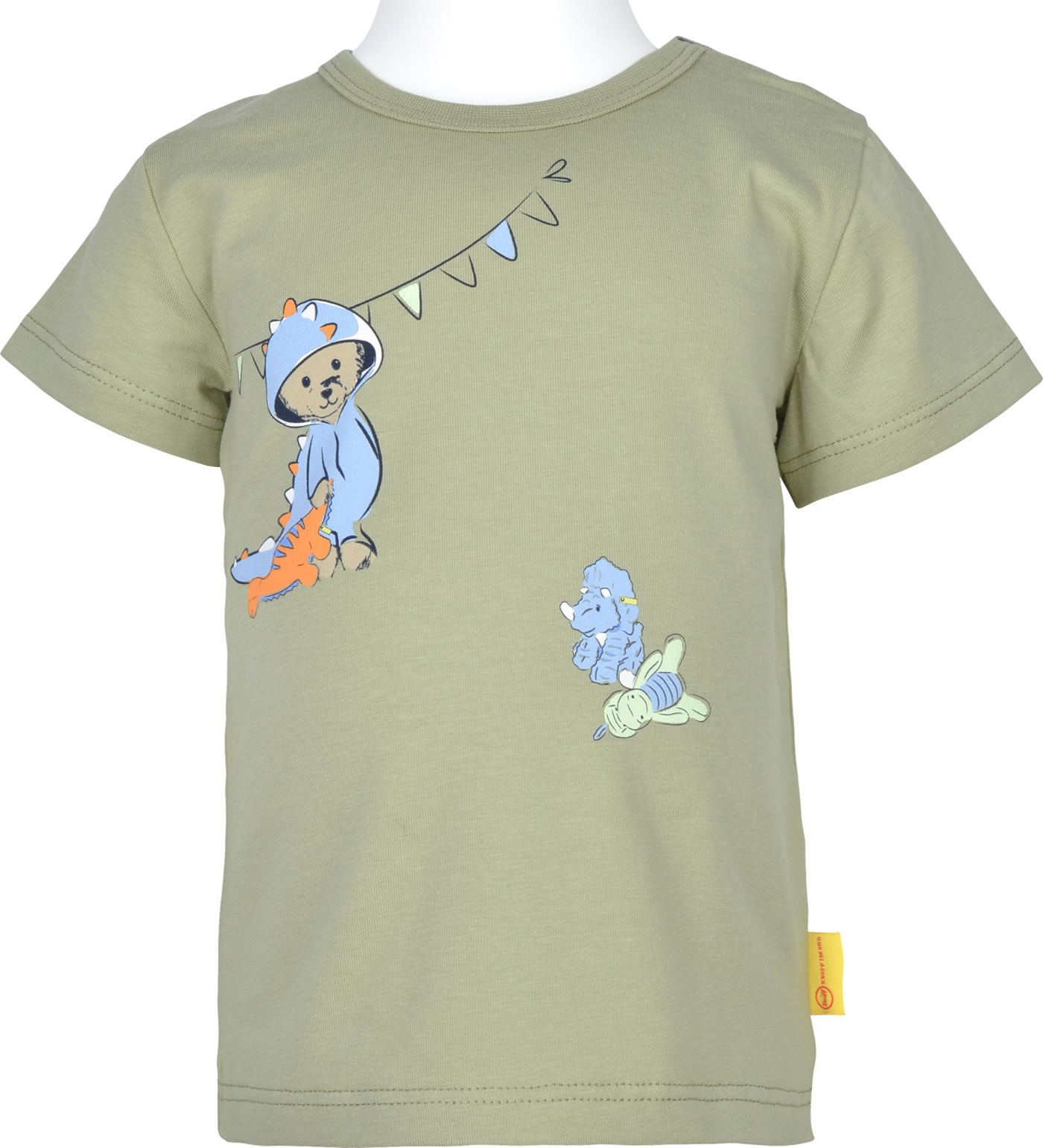 Kurzarmshirt aus weichem Jersey für Jungen aus der Roarsome Kollektion von STEIFF. Ein toller Hingucker ist der STEIFF Bär im Dino-Kostüm auf der Vorderseite. Druckknöpfe auf der Schulter erleichtern das An- und Ausziehen.