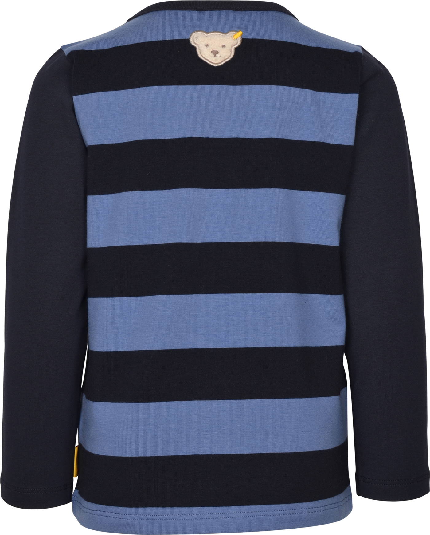 Langarm-Shirt für Jungen aus der Let's Play!-Kollektion von STEIFF. Ein toller Hingucker ist der baumelnde STEIFF Bär auf der Vorderseite. Auf der gestreiften Rückseite befindet sich der kleine STEIFF Bär. Das weiche Material sorgt für einen hohen Tragekomfort.