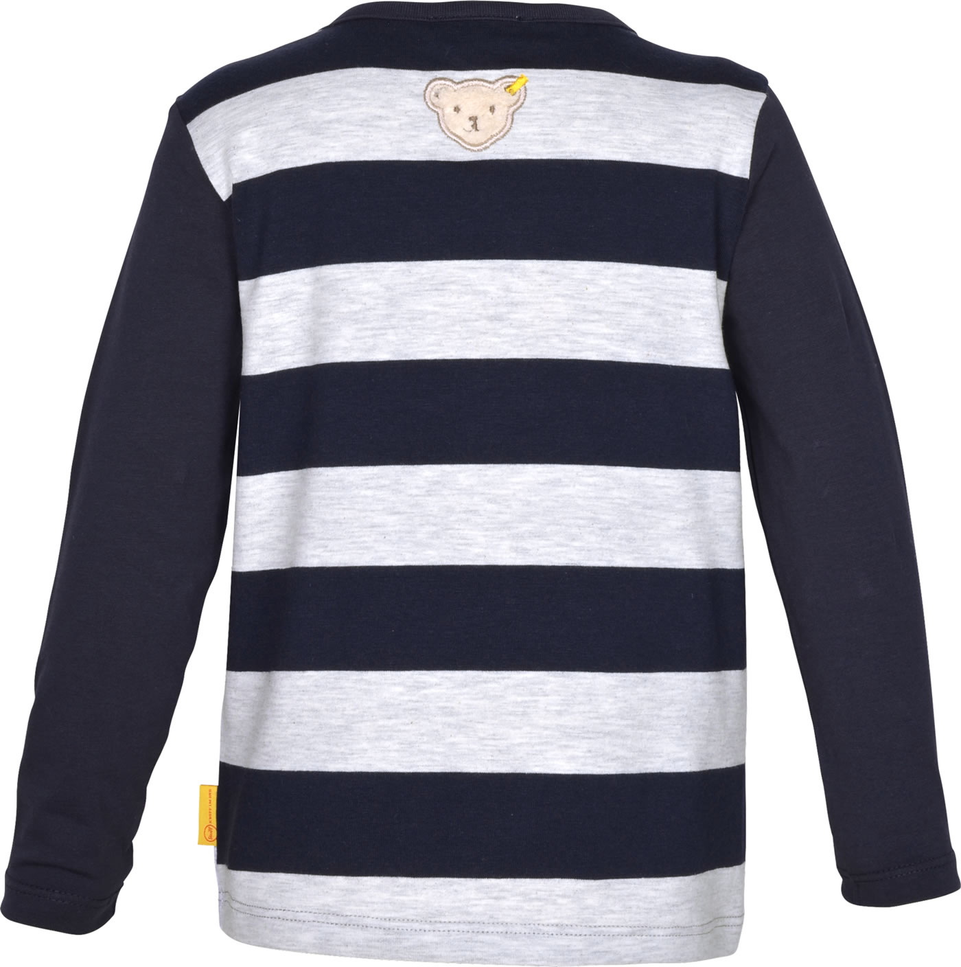 Langarm-Shirt für Jungen aus der Let's Play!-Kollektion von STEIFF. Ein toller Hingucker ist der baumelnde STEIFF Bär auf der Vorderseite. Auf der gestreiften Rückseite befindet sich der kleine STEIFF Bär. Das weiche Material sorgt für einen hohen Tragekomfort.