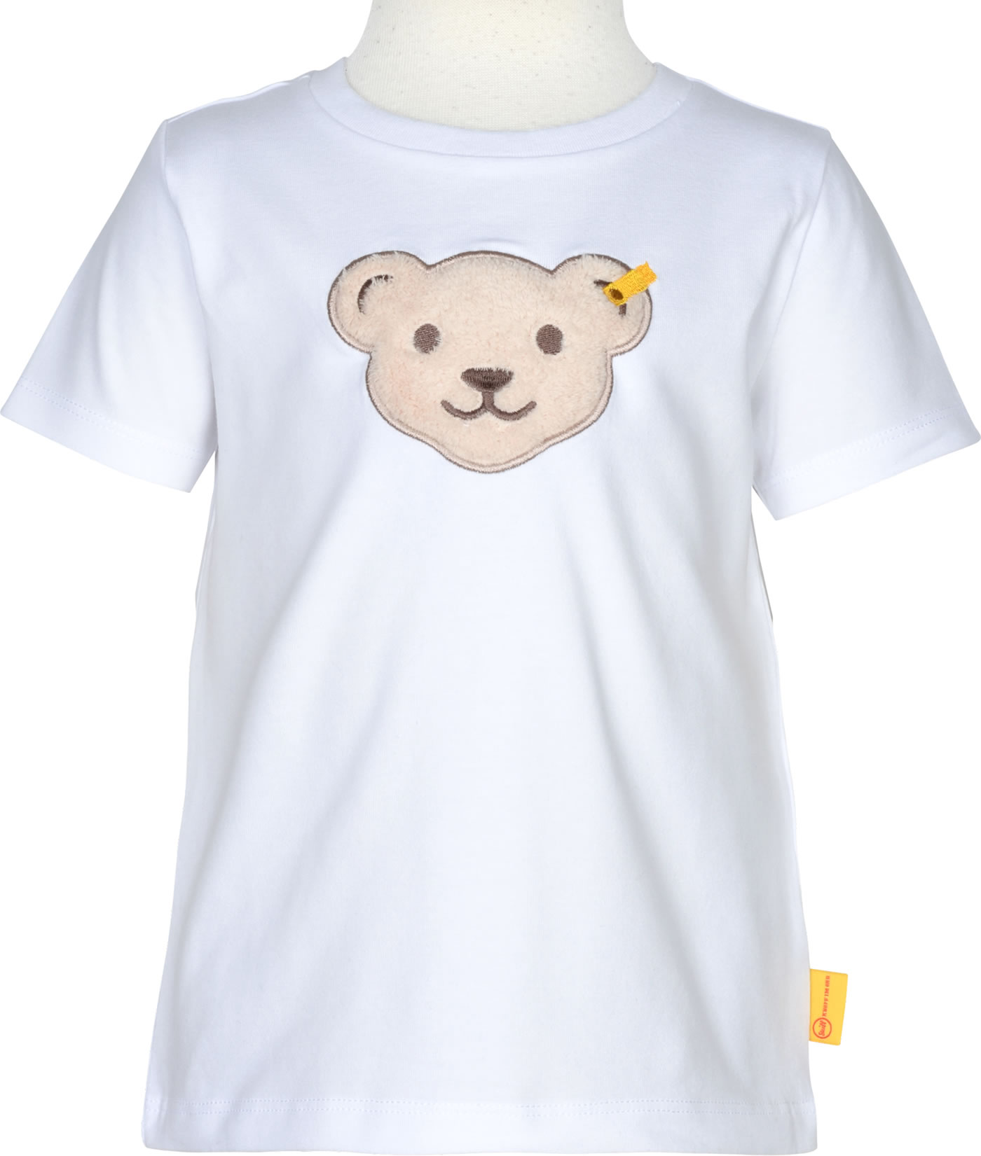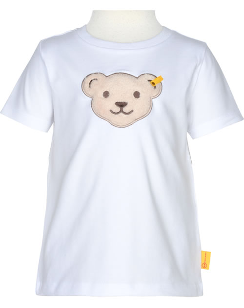 Shirt mit kurzen Ärmeln für Jungen aus der Hello Summer-Kollektion von STEIFF. Der STEIFF Bär auf der Brust ist mit Quietsche. Das weiche Material sorgt für einen hohen Tragekomfort.