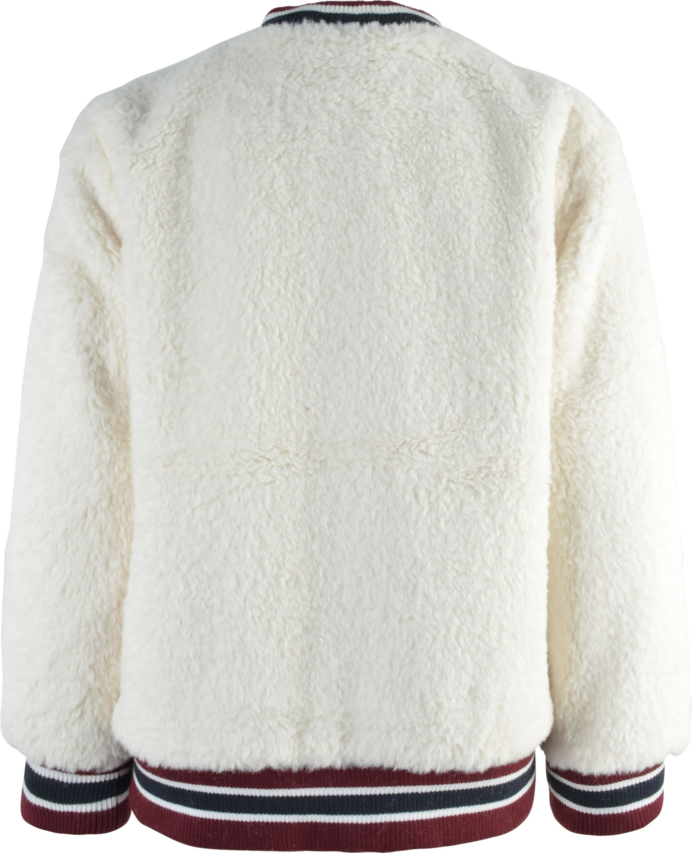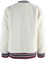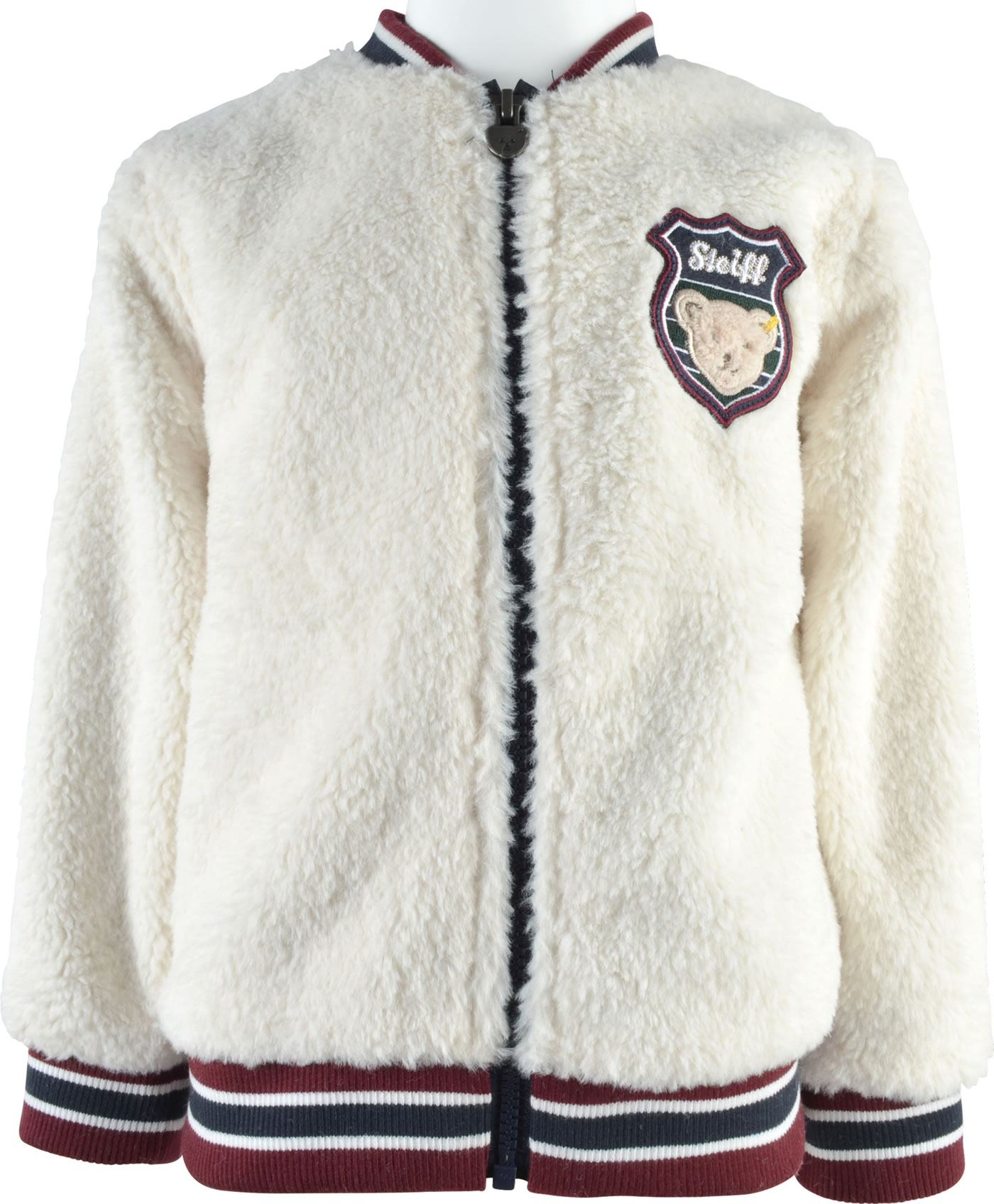 Warme, weiche Fleecejacke mit kleinem Stehkragen für Jungen von STEIFF aus der Year of the Teddy Bear-Kollektion. Der STEIFF Bär mit kleinem Wappen befindet sich auf der Brust. Die Jacke wird mit einem Reißverschluss geschlossen und und Saum und Ärmel schließen mit gestreiften Bündchen ab. Die Jacke im Collegestil hat ein dunkelblaues glattes Futter. Zwei Einstecktaschen bieten Platz für kleine Schätze.