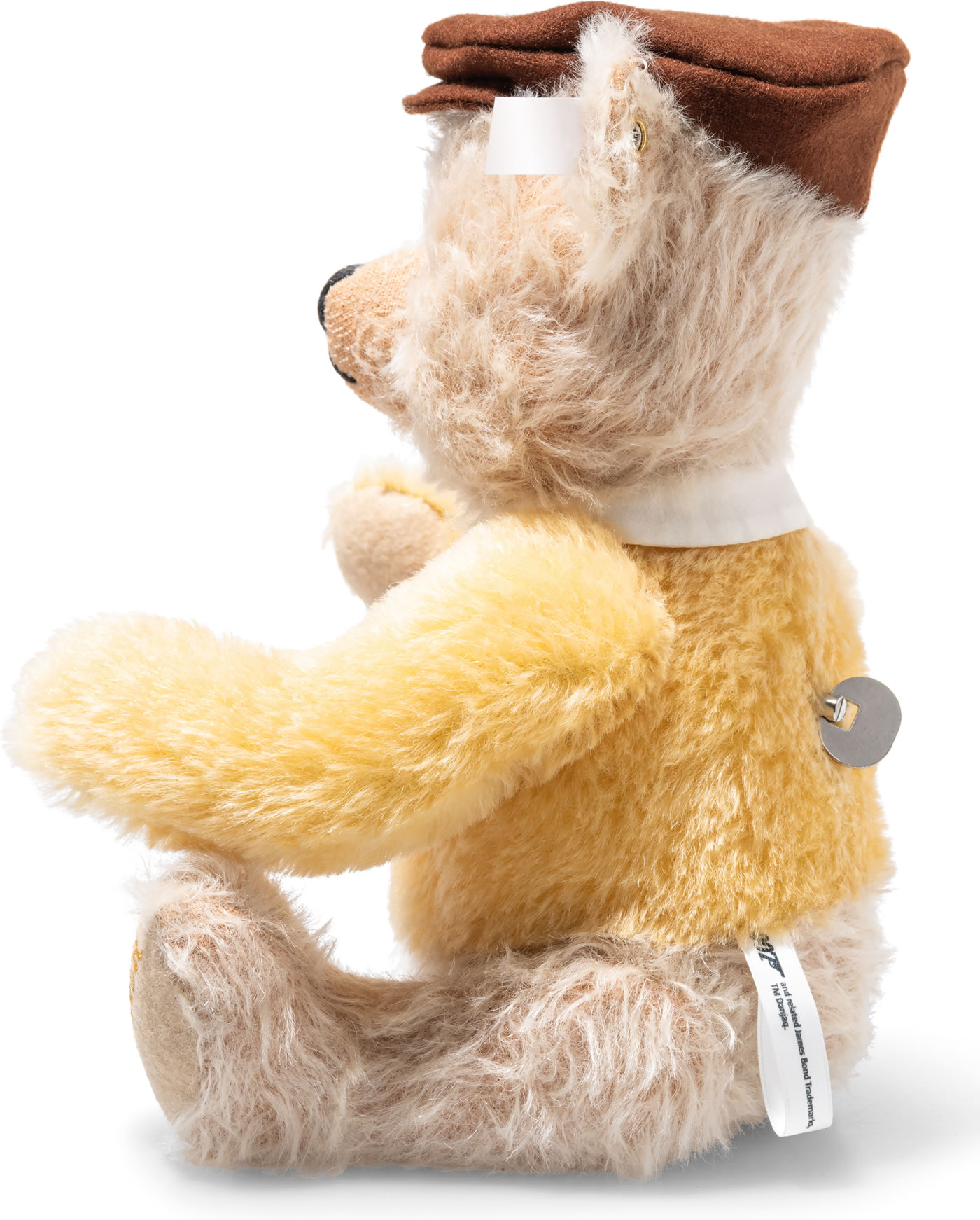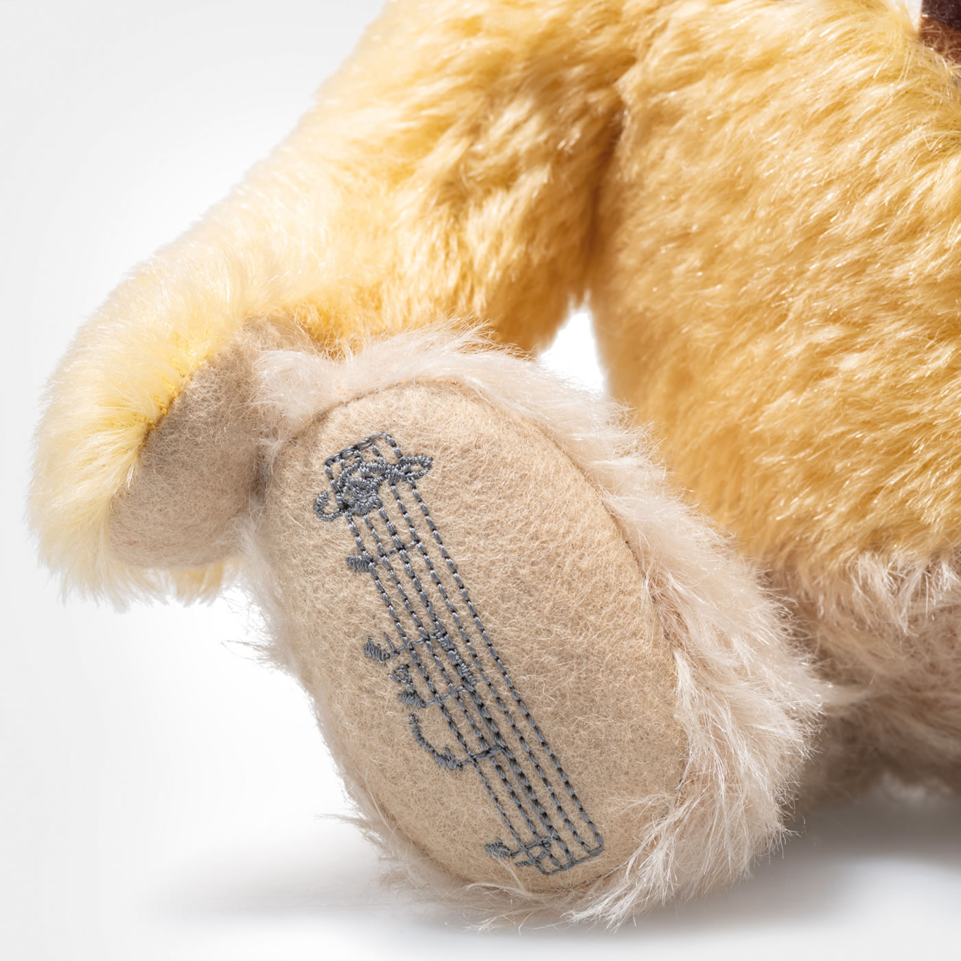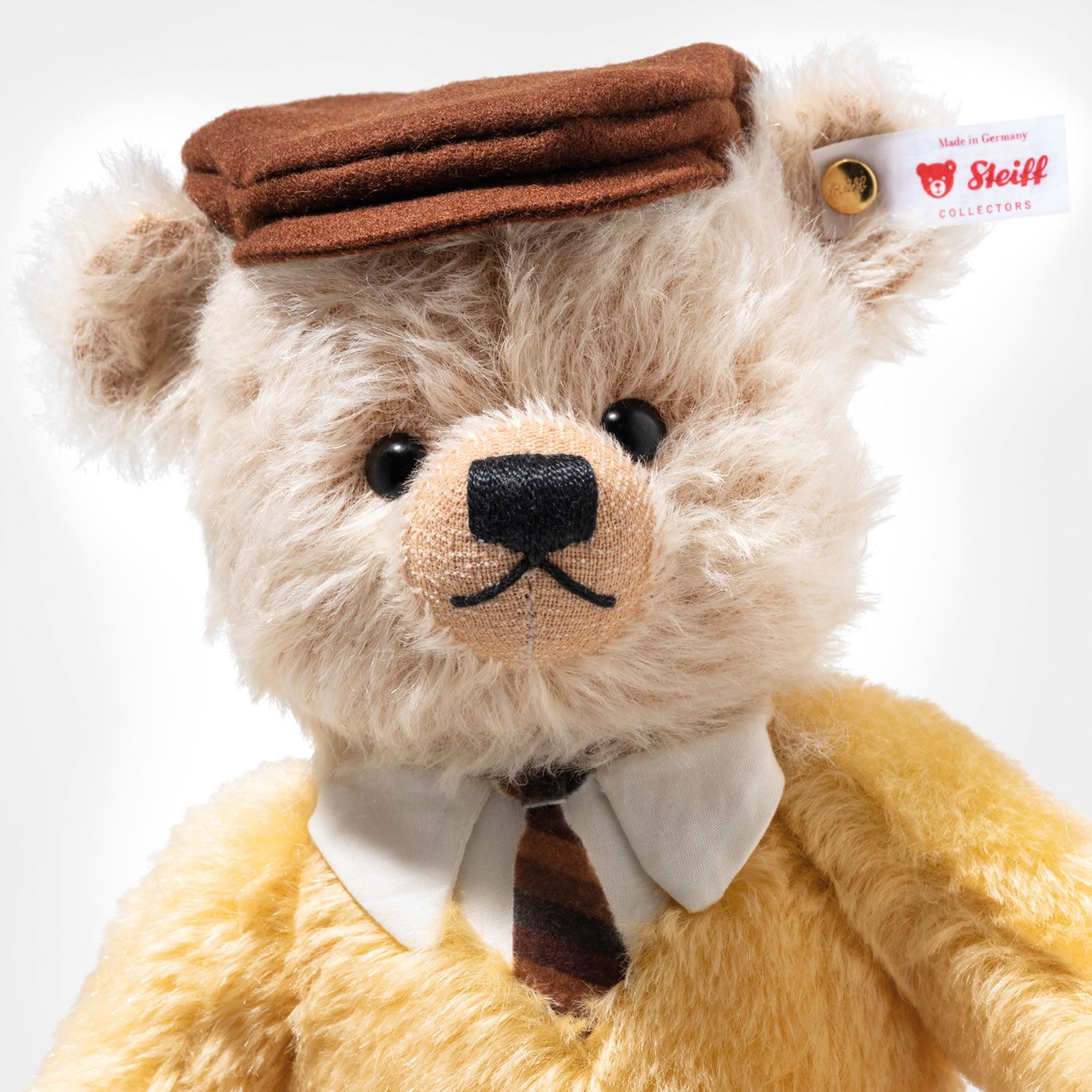 1964 wurde aus Ian Flemings Roman Goldfinger der dritte Film im James Bond Universum. Goldfinger hat viele ikonische 007-Highlights. Diesen hier nennen viele den großartigsten James Bond-Moment überhaupt: „Auf Wiedersehen, Mr. Bond“ „Erwarten Sie, dass ich rede?“ „Nein, Mr. Bond, ich erwarte, dass Sie sterben!" Auric Goldfinger, der unheimlichste aller James Bond Bösewichte, hat eine Faszination für Gold, die er Bond während einer Partie Golf offenbart. Bond trickst Goldfinger so aus, dass dieser verliert. Diese Szene ist die Inspiration für das Design dieses Teddybären. Er trägt das Outfit, das der deutsche Schauspieler Gert Fröbe im Film trug. Das Logo des Films ist auf einer Sohle eingestickt. Auf der anderen befinden sich die Musiknoten der Titelmelodie des Films. Mithilfe eines Musikwerkes im Inneren des kleinen Bösewichts, spielt diese den preisgekrönten Soundtrack.