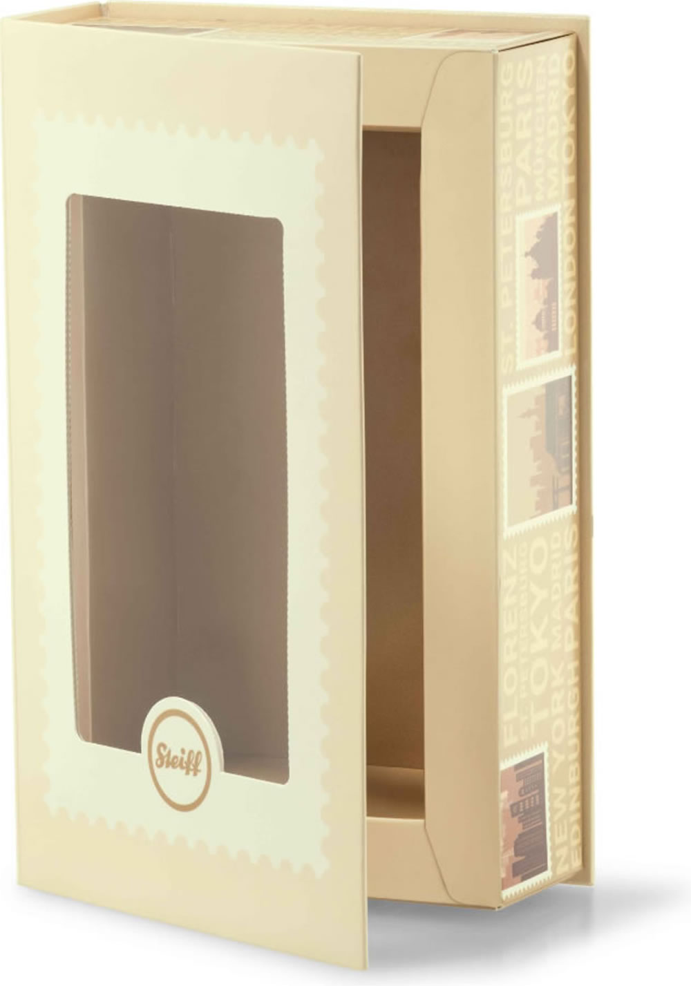 Pariser Chic und Eleganz verkörpert dieser 16 cm große Great Escapes Paris Teddybär. Wunderbar weich aus feinstem Mohair gefertigt und 5-fach gegliedert. Mit einem kecken Mützchen, welches am rechten Ohr fest vernäht ist. Die Dame ist blond und warme Pastelltöne unterstreichen das Erscheinungsbild ebenso wie das modische Jäckchen mit Schleife und Herzanhänger. Passend dazu die mit viel Liebe kreierte Geschenkverpackung im Buchdesign mit landesspezifischen Details. Mit Sichtfenster in der magnetisch verschließbaren Tür. Auf der Verpackungsrückseite ist eine Postkarte integriert - geeignet für eine handgeschriebene Post an einen geliebten Menschen.