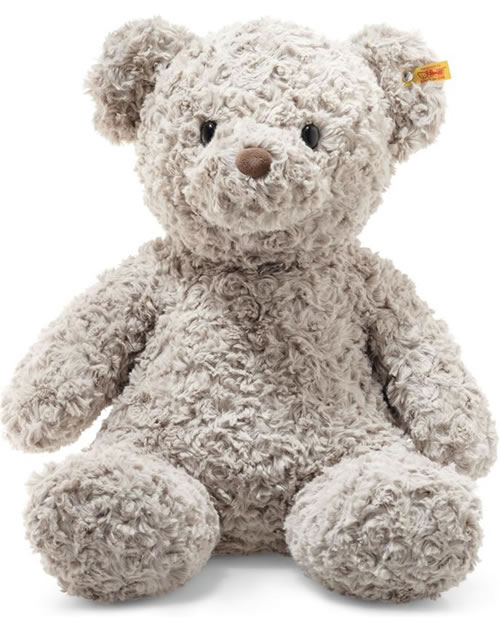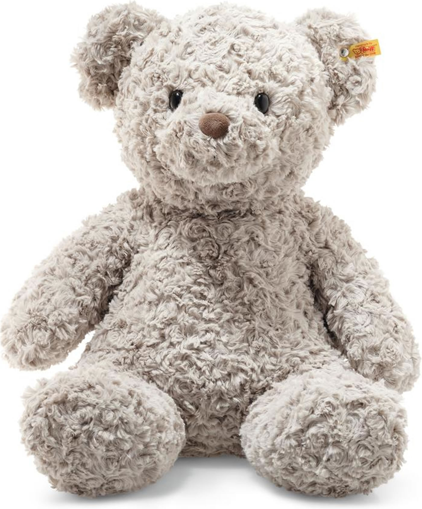 Bereits der Name des Soft Cuddly Friends Honey Teddybär sagt es schon aus: der 48 cm große Freund mit seinem honigsüßen Lächeln begeistert alle Kinderherzen. Die eingearbeiteten Granulatsäckchen im Gesäß, den Pfoten und Sohlen sorgen für ein sicheres Sitzen. Aber auch zum Greifen lernen sind sie optimal geeignet.