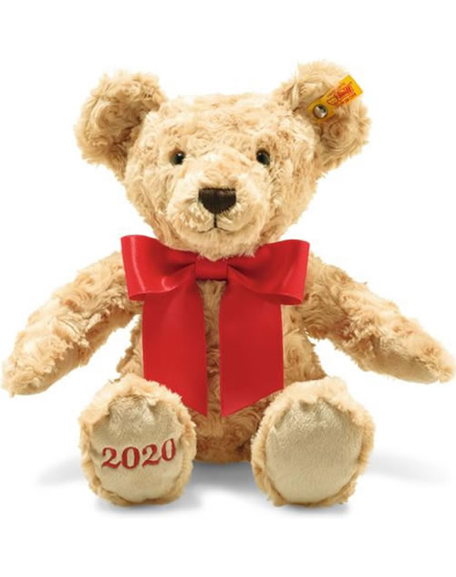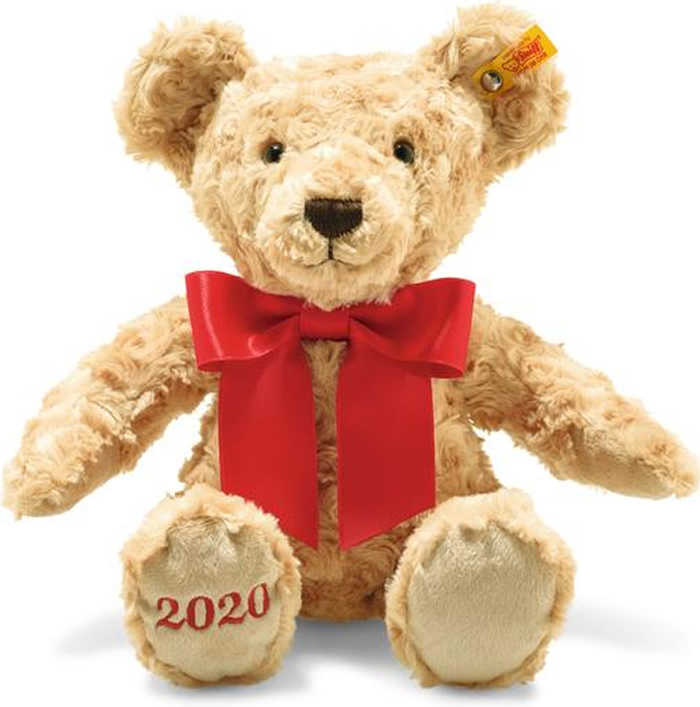 Schon seit vielen Generationen ist der Teddybär das Lieblingsspielzeug der Kinder. Er spendet Liebe, Geborgenheit und Trost. Und wacht in der Nacht als treuer Gefährte und Beschützer über den Schlaf seines Schützlings. Cosy Jahresbär 2020 ist 34 cm groß und aus beigefarbigem kuschelweichen Plüsch gefertigt. Nase und Mund sind wunderschön in Braun garniert. Die rechte Sohle ziert die gestickte Jahreszahl 2020. Als Jahresbär trägt er eine festliche rote Schleife, die nicht abnehmbar ist.