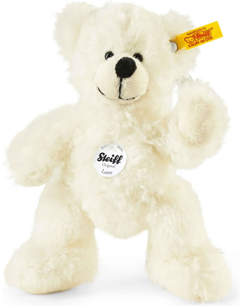 Lotte Teddybär verzaubert jedes Kind. Dieser 18 cm große, weiße Teddybär lächelt sich mit seinem putzigen Gesicht direkt in die Herzen der Kinder. Die niedliche Lotte ist ein fröhlicher Wirbelwind. Lotte liebt es, sich zu verstecken und kichert vergnügt, wenn sie gefunden wird. Dann schmiegt sich die immer gut gelaunte Lotte mit ihrem weißen Fell aus kuschelweichem Plüsch, in die Arme ihres kleinen Menschenfreundes. Beim abendlichen Kuscheln schenkt die entzückende Lotte Ihrem Sonnenschein Nähe und Geborgenheit. Gemeinsam reisen Kind und Teddybär ins Land der Träume. Die zauberhafte Lotte ist die perfekte Begleiterin für die schönsten Augenblicke im Leben Ihres Kindes.