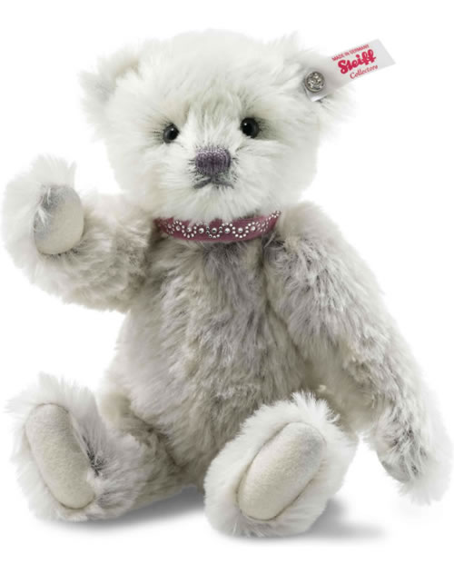 Einladung zum Verlieben – die erste. In feinstes, silbernes Mohair gekleidet möchte der größere Love Teddybär mit Kristall-“Knopf im Ohr“ ein Schmuckstück in Ihrer Steiff Sammlung werden. Als Mitbringsel hat er ein Halsband aus Samt mit Swarovski Kristallen dabei, das er Ihnen ab und an gerne ausleiht. Dann tragen Sie es einen Abend lang am Arm – und Ihren Bären in Gedanken mit sich!
