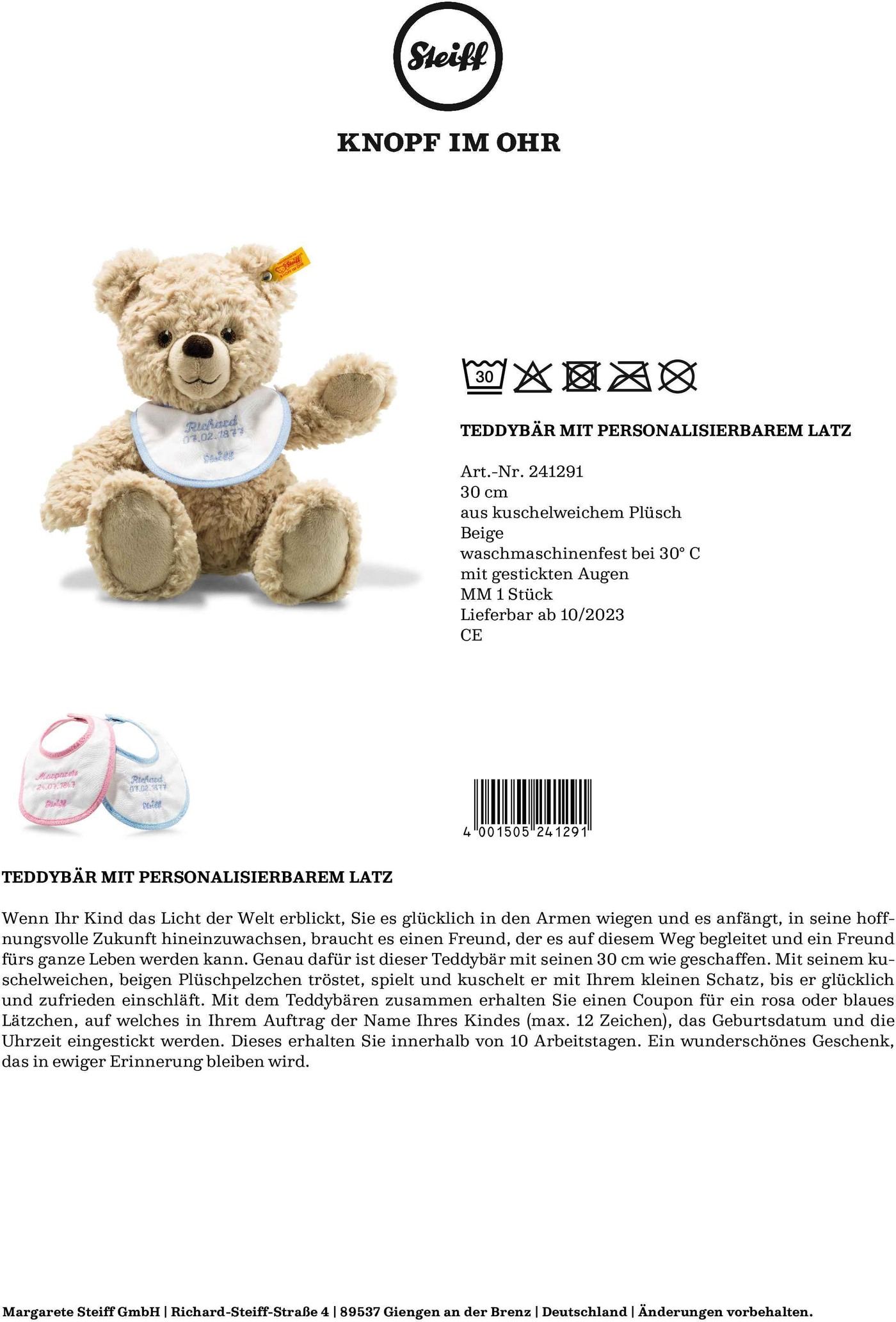 Steiff Teddybär mit personalisierbarem Lätzchen 30 cm