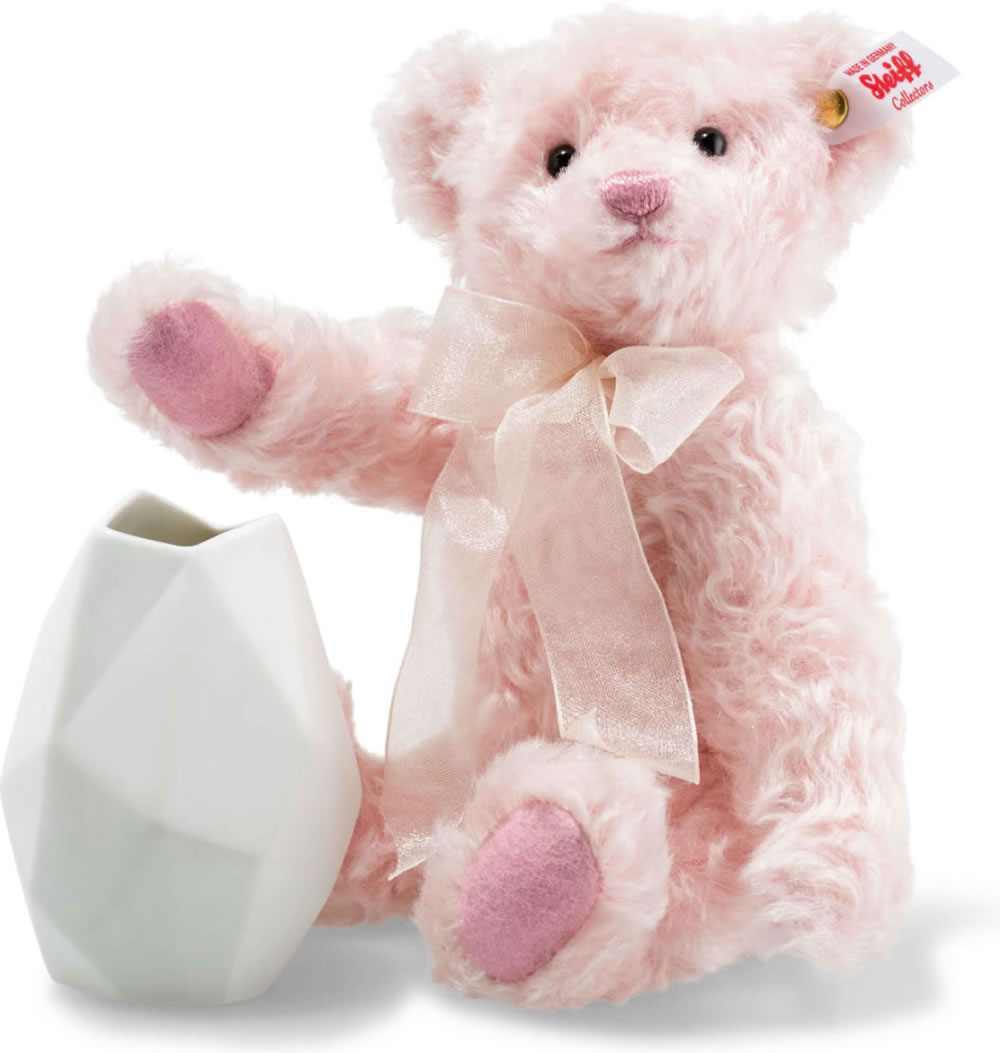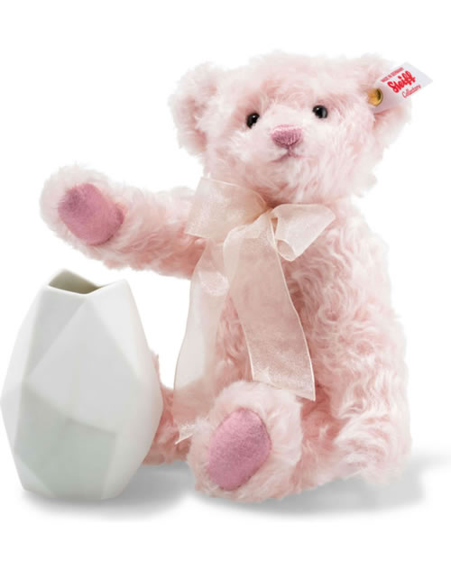 Steiff Teddybär Rose mit Vase 23 cm Mohair rosé 006760