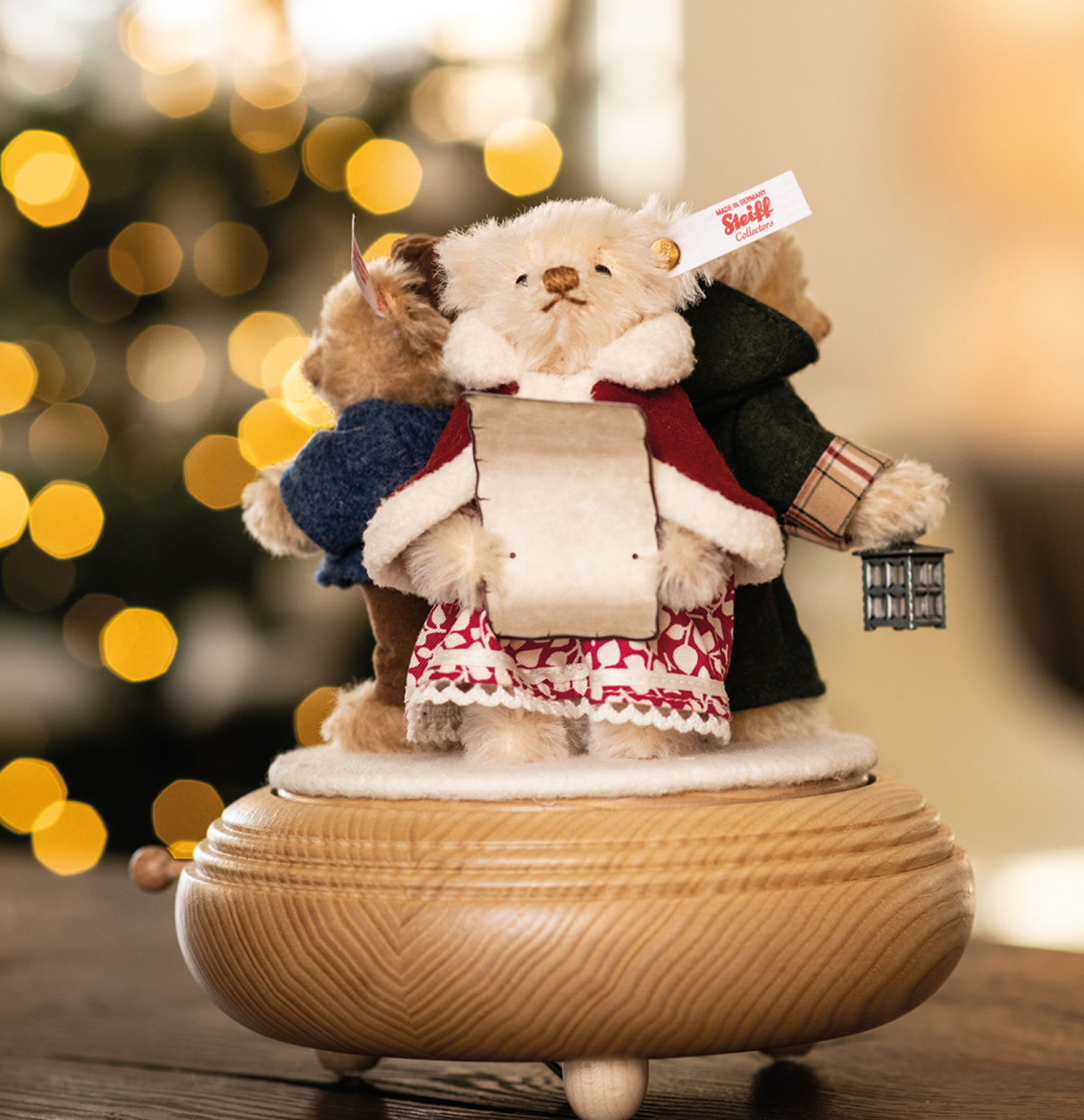 Steiff Teddybär Spieluhr Weihnachtssänger Mohair 3tlg. RMS bunt 007552