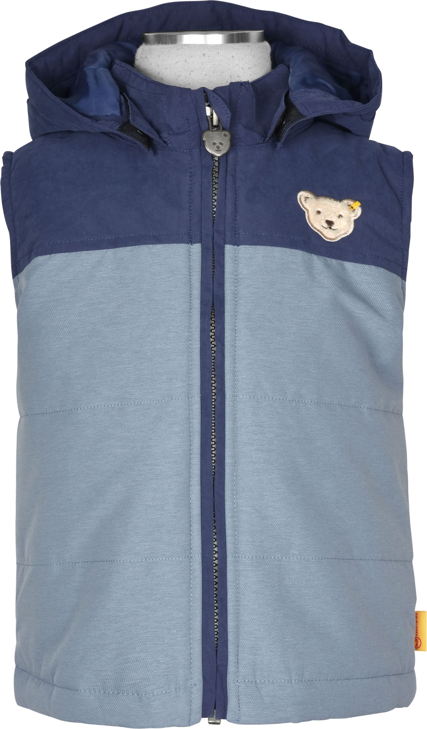 Tolle Weste mit abnehmbarer Kapuze für Jungen aus der Red and Blue-Kollektion von STEIFF. Die Weste ist gesteppt und hält dank der Wattierung schön warm. Der kleine STEIFF Bär sitzt auf der Vorderseite auf der linken Brust und als Reflektor auf der Rückseite. Die atmungsaktive BIONIC-FINISH ECO-Imprägnierung ist fluorfrei und macht die Oberfläche wasser- und schmutzabweisend.