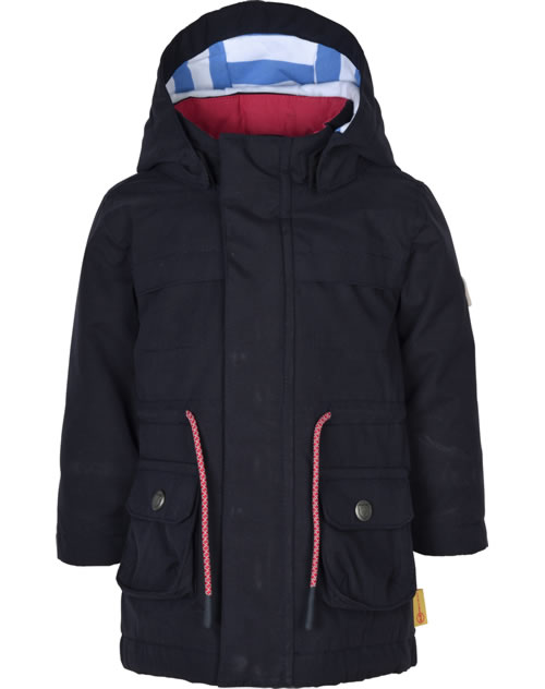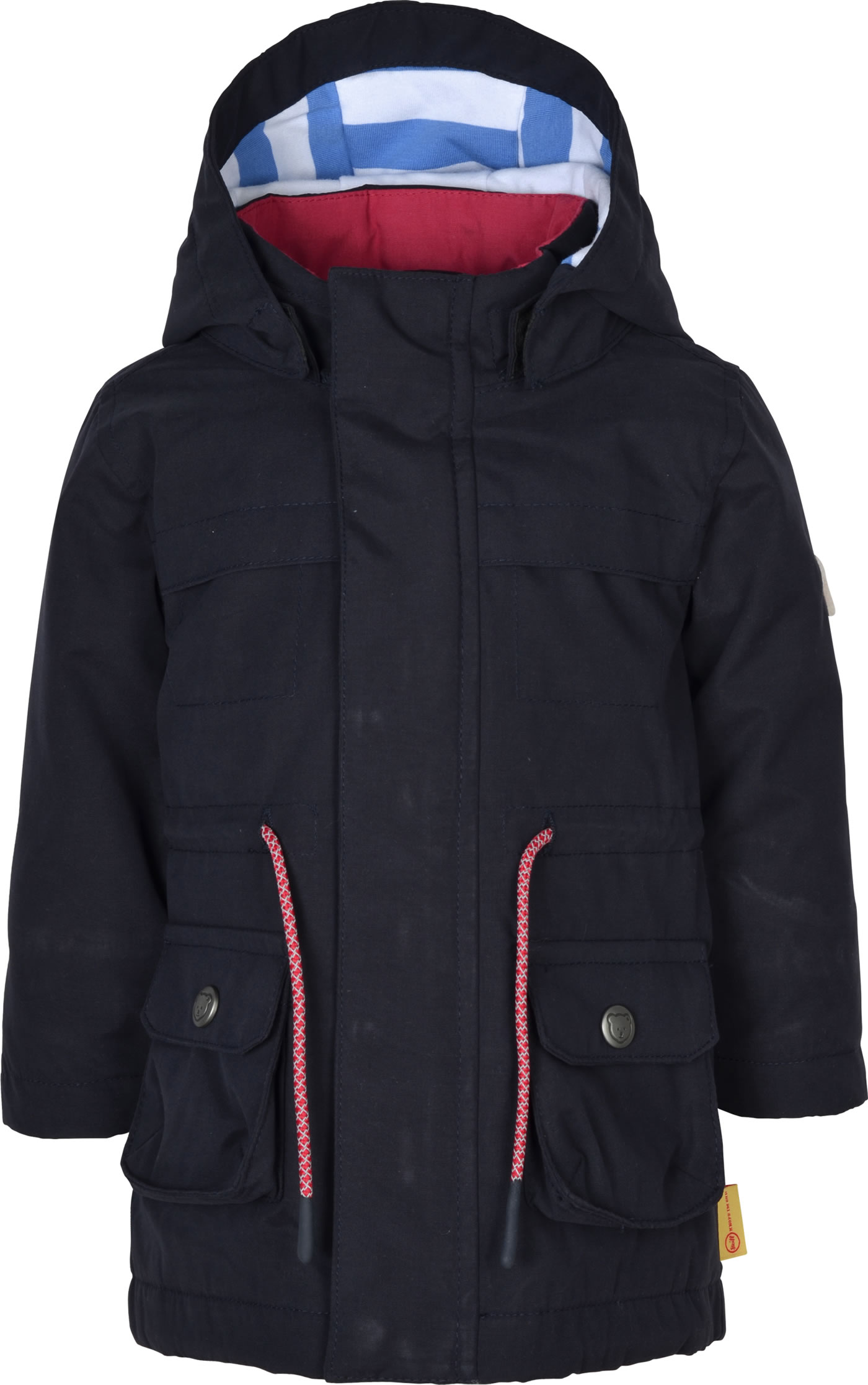 Parka mit abnehmbarer Kapuze für Jungen aus der Under the Surface-Kollektion von STEIFF. Die Jacke ist leicht wattiert und hält dadurch ideal für die Übergangszeit und kühlere Sommertage. Mit einem Tunnelzug lässt sich die Weite in der Taille regulieren. Schöne Details sind das gestreifte Kapuzenfutter und die aufgesetzten Taschen. Der STEIFF Bär ziert den linken Ärmel. Die atmungsaktive BIONIC-FINISH ECO-Imprägnierung ist fluorfrei und macht sie wasser- und schmutzabweisend.