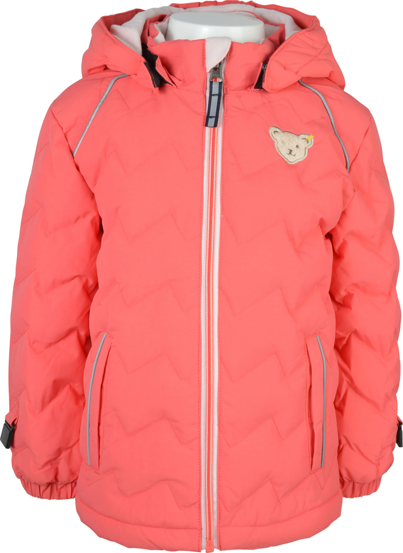 Warme Winterjacke für Jungen von STEIFF aus der Steiff Tec Outerwear-Kollektion. Die atmungsaktive BIONIC-FINISH ECO-Imprägnierung ist fluorfrei und macht sie wasser- und schmutzabweisend. Die Kapuze ist mit Fleece gefüttert und abnehmbar. Der kleine STEIFF Bär befindet sich auf der Brust und als reflektierendes Element auf der Rückseite. Zwei Eingrifftaschen mit Klettverschluss bieten Platz für kleine Schätze. An den Ärmeln können Handschuhe befestigt werden. Die Rückseite ist etwas länger geschnitten.