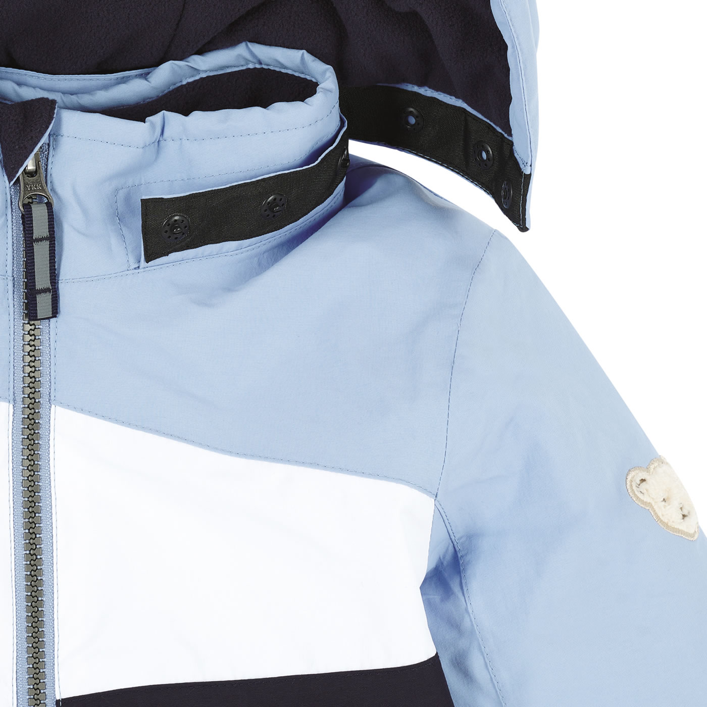 Warme Winterjacke im Farbmix für Jungen von STEIFF aus der Steiff Tec Outerwear-Kollektion. Die atmungsaktive BIONIC-FINISH ECO-Imprägnierung ist fluorfrei und macht sie wasser- und schmutzabweisend. Die abnehmbare Kapuze und der Oberkörper sind mit Fleece gefüttert. Eine kleine Reißverschlusstasche befindet sich auf der Vorderseite. Der kleine STEIFF Bär befindet sich auf dem linken Arm und als reflektierendes Element auf der Rückseite. An den Ärmeln befinden sich Sicherheitsclips für Handschuhe und eine Reißverschlusstasche in der Ärmelnaht.. Die Rückseite ist etwas länger geschnitten und die Saumweite lässt sich mit einem Tunnelzug einstellen.
