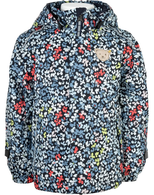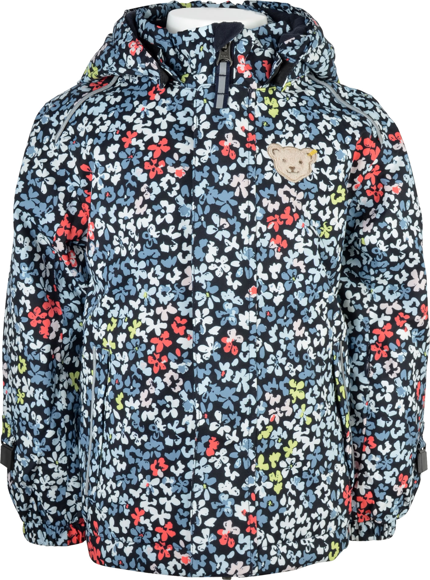 Warme Winterjacke für Mädchen von STEIFF aus der Steiff Tec Outerwear-Kollektion. Die atmungsaktive BIONIC-FINISH ECO-Imprägnierung ist fluorfrei und macht sie wasser- und schmutzabweisend. Die Kapuze ist abnehmbar und das elastische Bündchen sorgt für einen guten Sitz. Kapuze und Kragen sind mit weichem Fleece gefüttert. Der kleine STEIFF Bär befindet sich auf der Brust und als reflektierendes Element auf der Rückseite. Zwei Eingrifftaschen mit Klettverschluss und eine Ärmeltasche bieten Platz für kleine Schätze. An den Ärmeln können Handschuhe befestigt werden. Die Rückseite ist etwas länger geschnitten. Ein Schneefang verhindert das Eindringen von Nässe und Schnee.