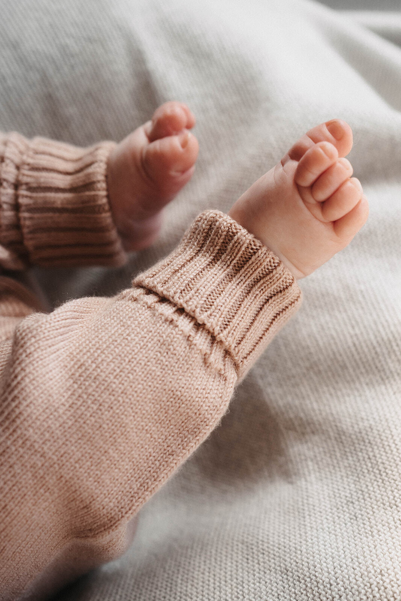 Strickgut Baby-Bundhose zum Mitwachsen aus Merinowolle - Puder