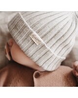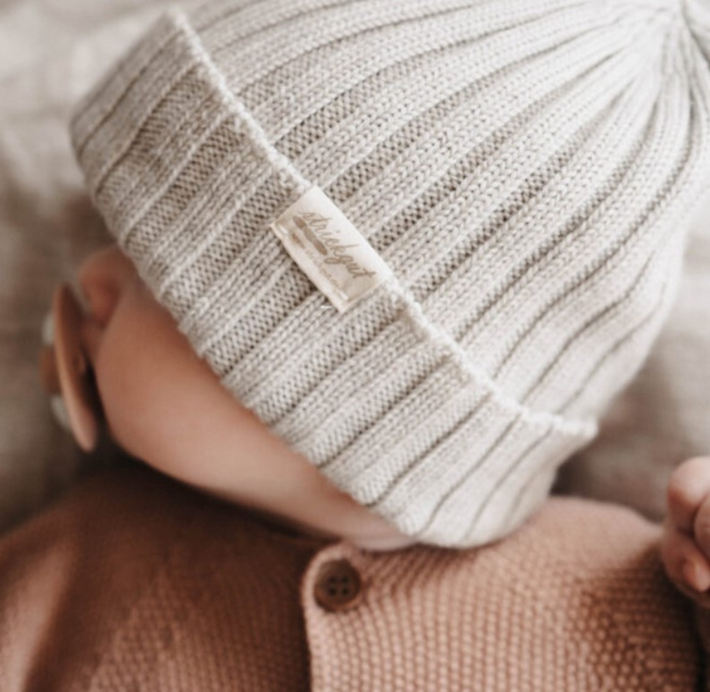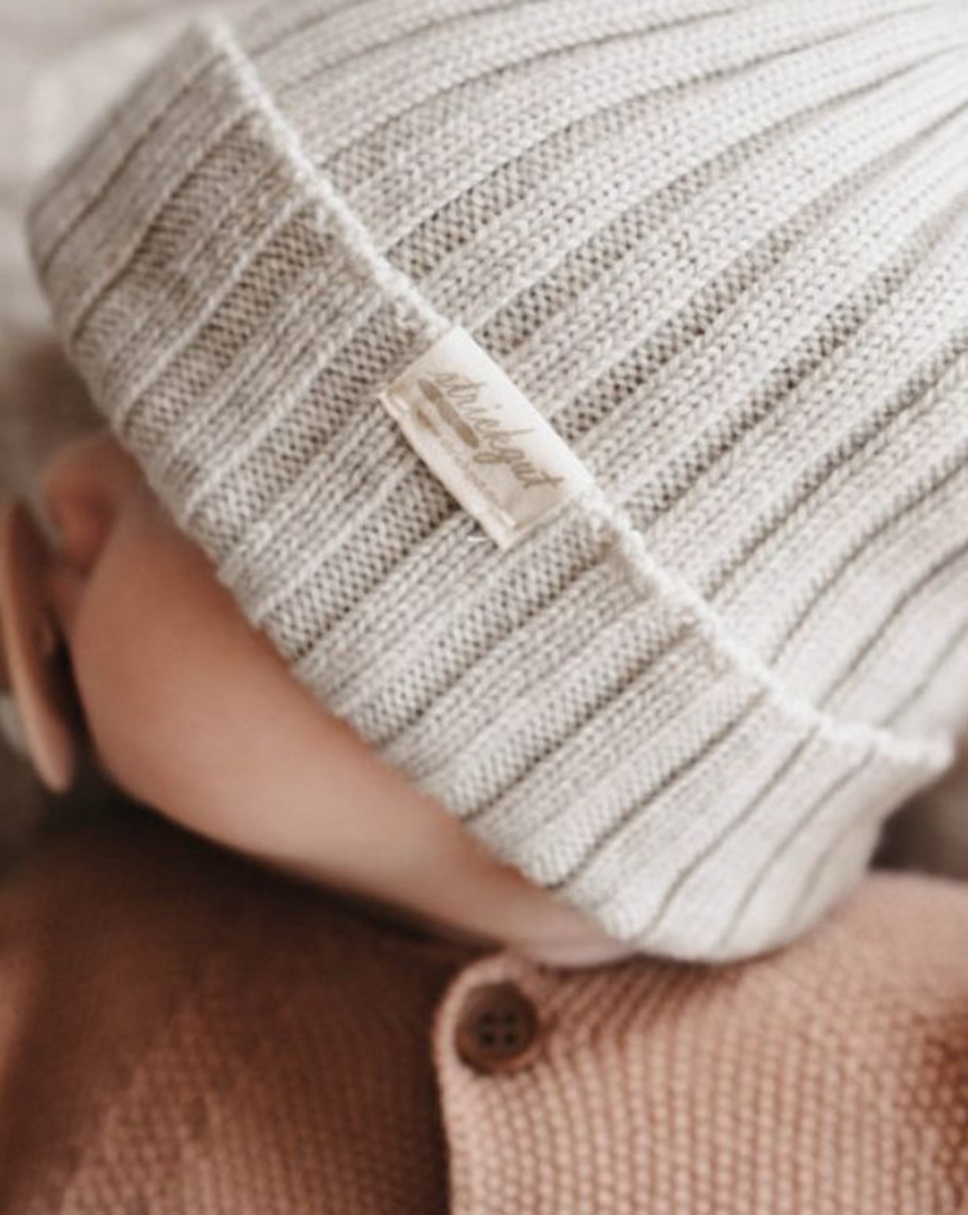 Diese wunderschöne gerippte Baby-Mütze in breiter Rippstruktur des deutschen Labels Strickgut ist aus sehr hochwertiger, weicher mulesing-freier Merinowolle gestrickt. 🤍
