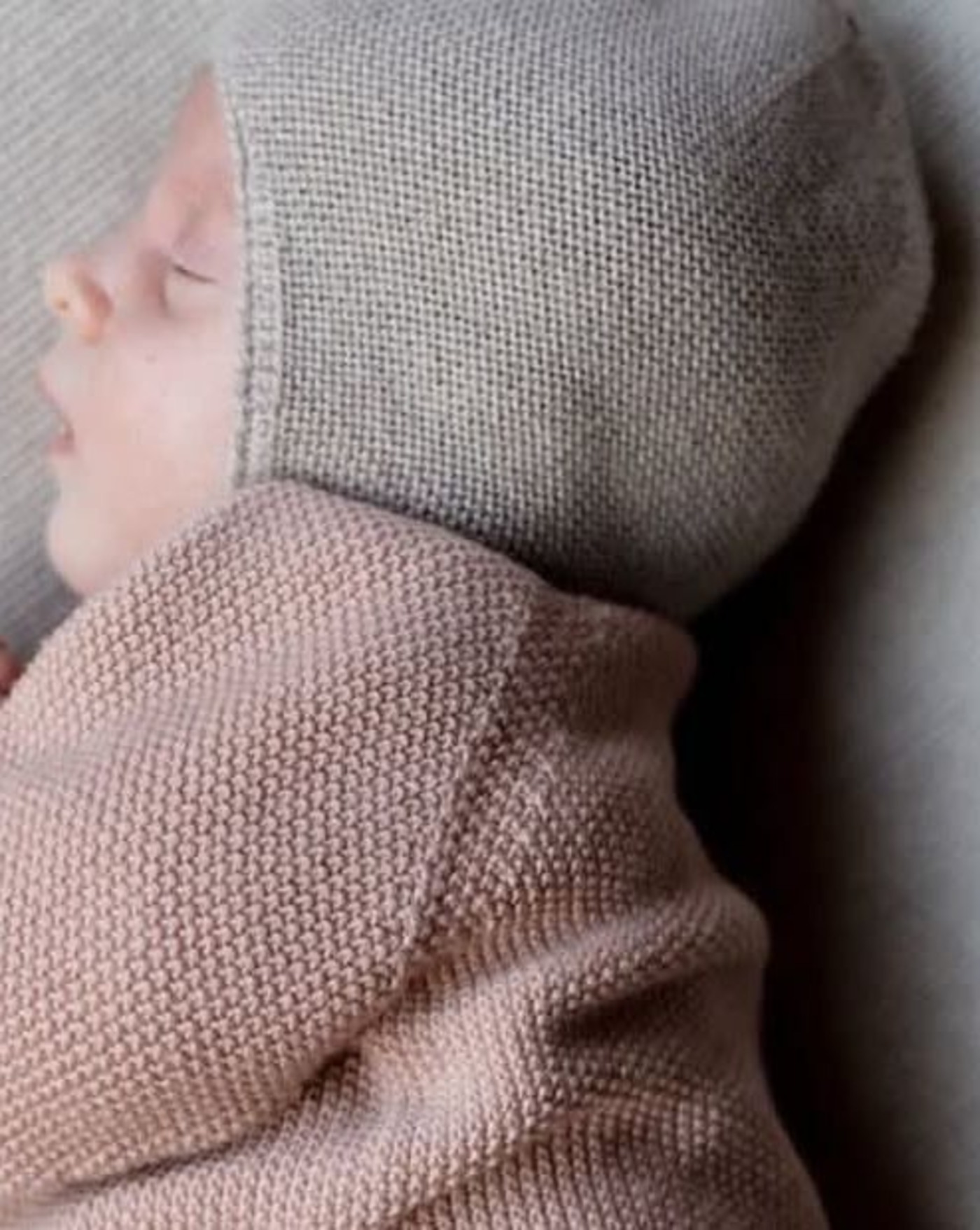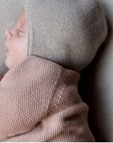 Strickgut Baby-Mütze mit Ohrenklappen aus Merinowolle - Stein