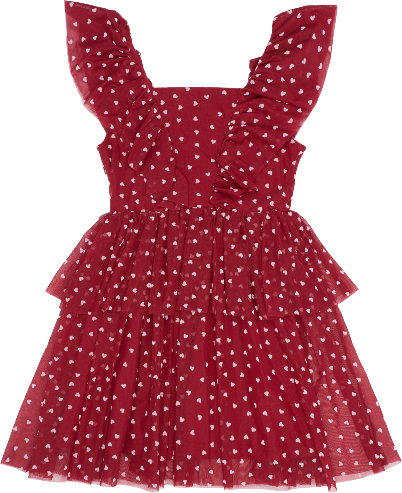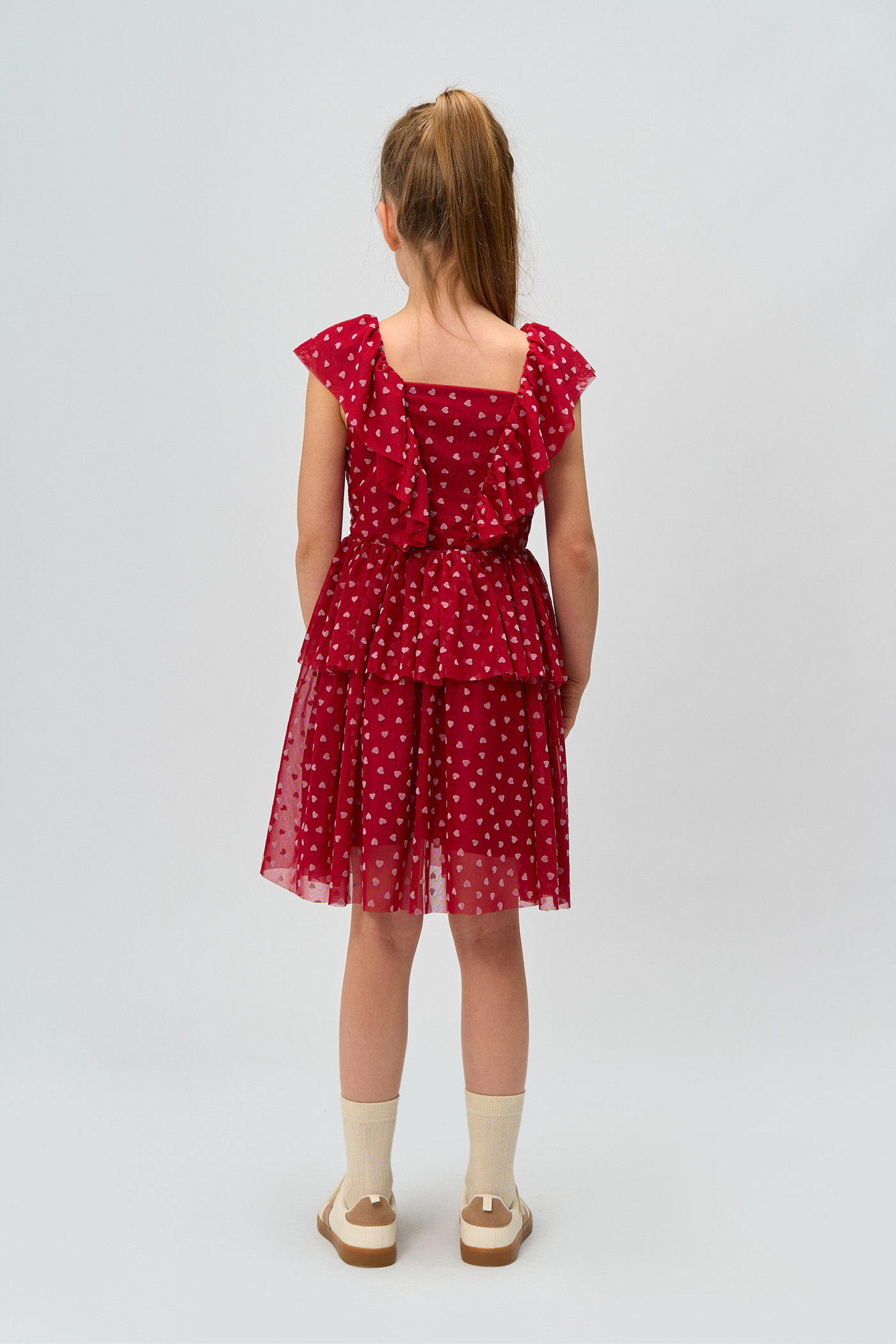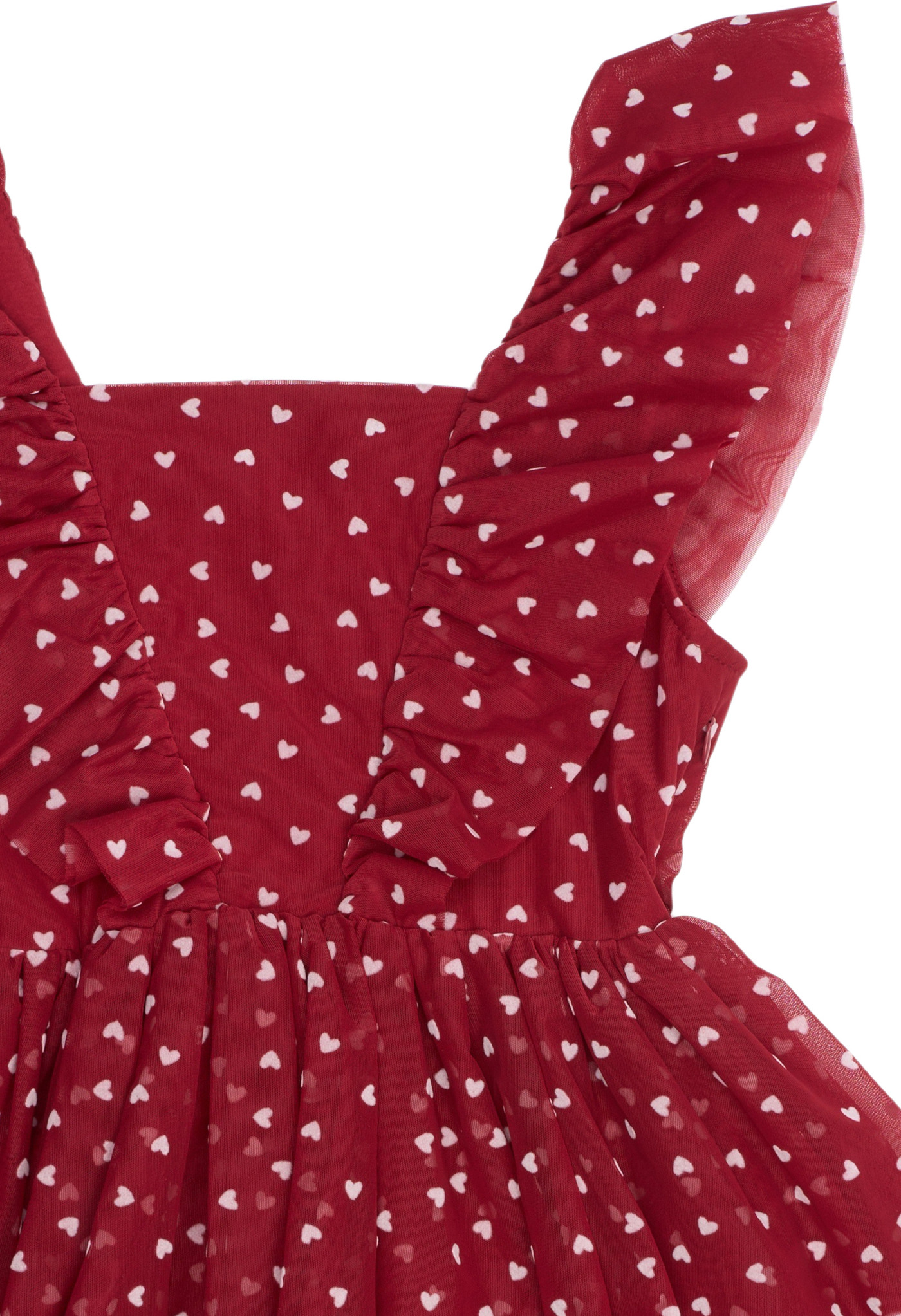 Die feinen Rüschen an Schultern und Rock zaubern einen wunderschönen Look, während das leichte Mesh-Gewebe mit vielen kleinen Herzchen liebevoll verziert ist. 💗