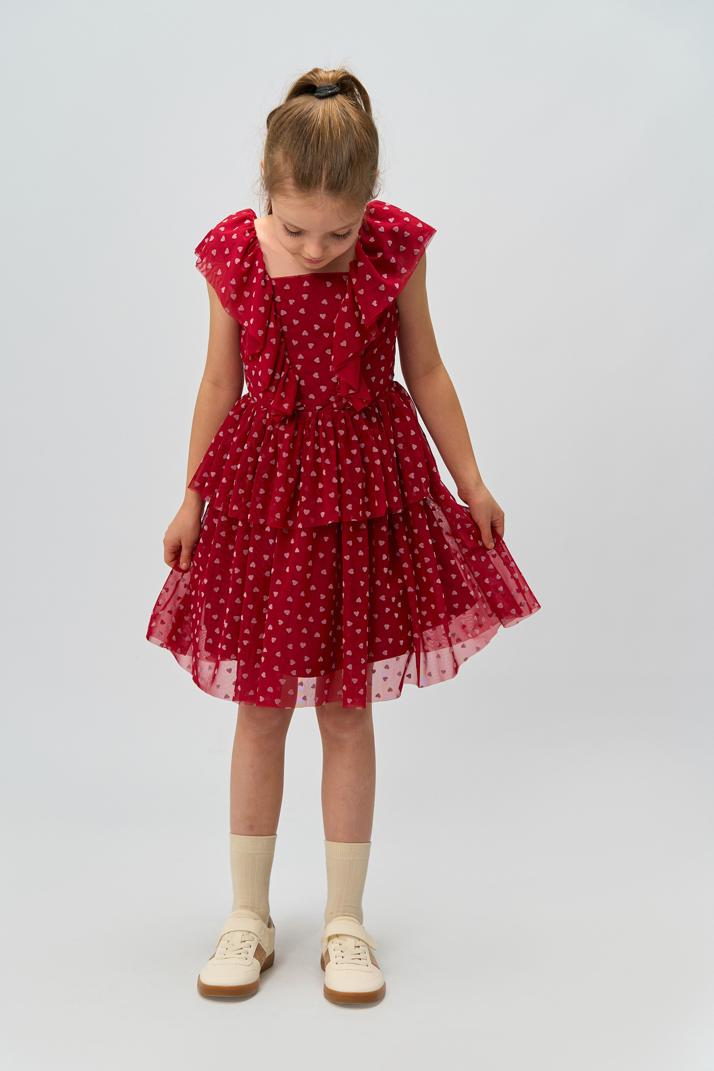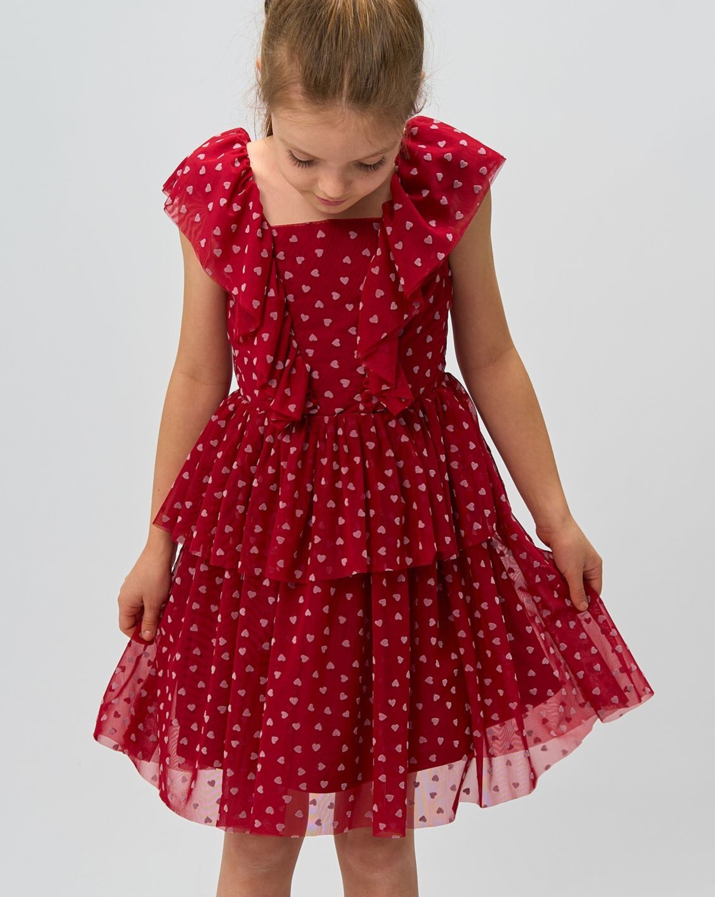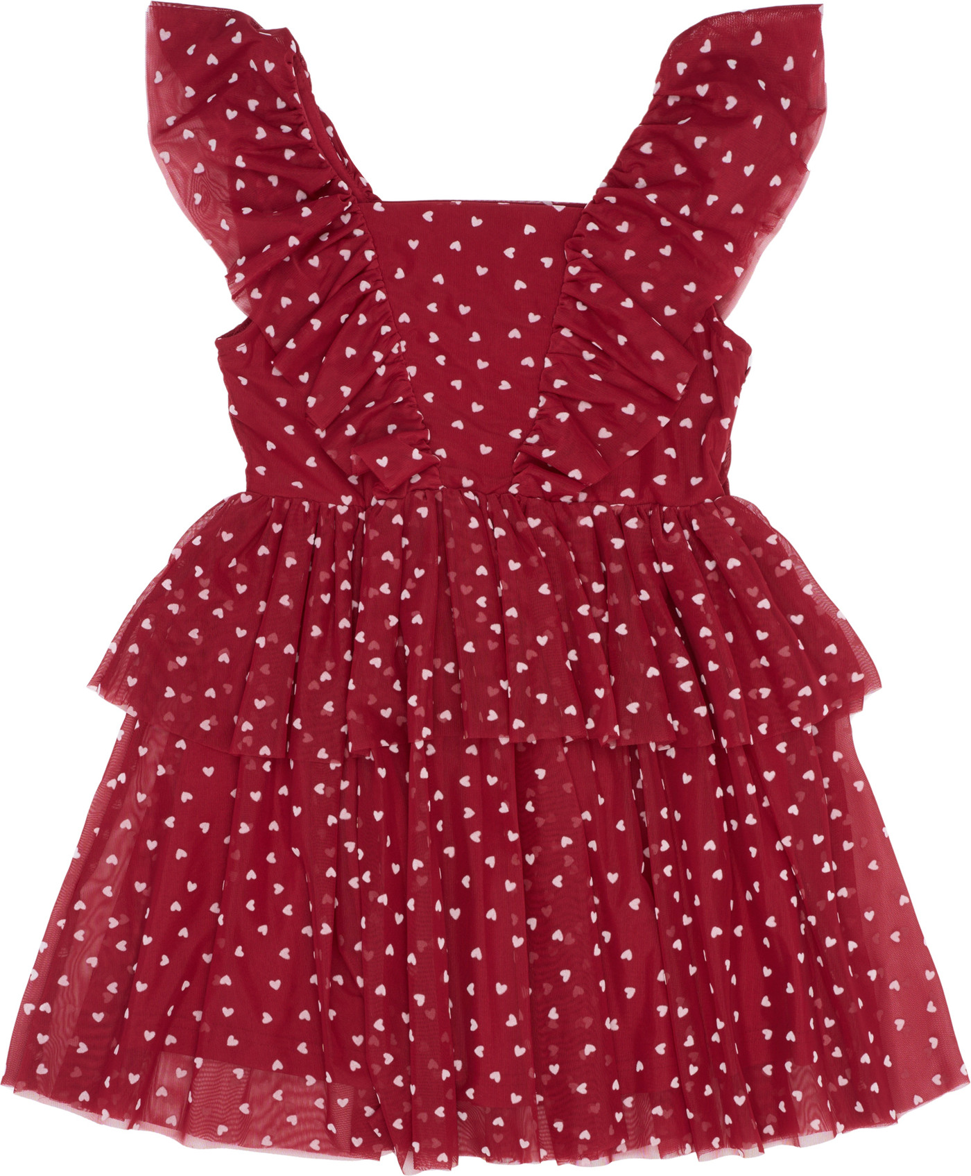 Die feinen Rüschen an Schultern und Rock zaubern einen wunderschönen Look, während das leichte Mesh-Gewebe mit vielen kleinen Herzchen liebevoll verziert ist. 💗