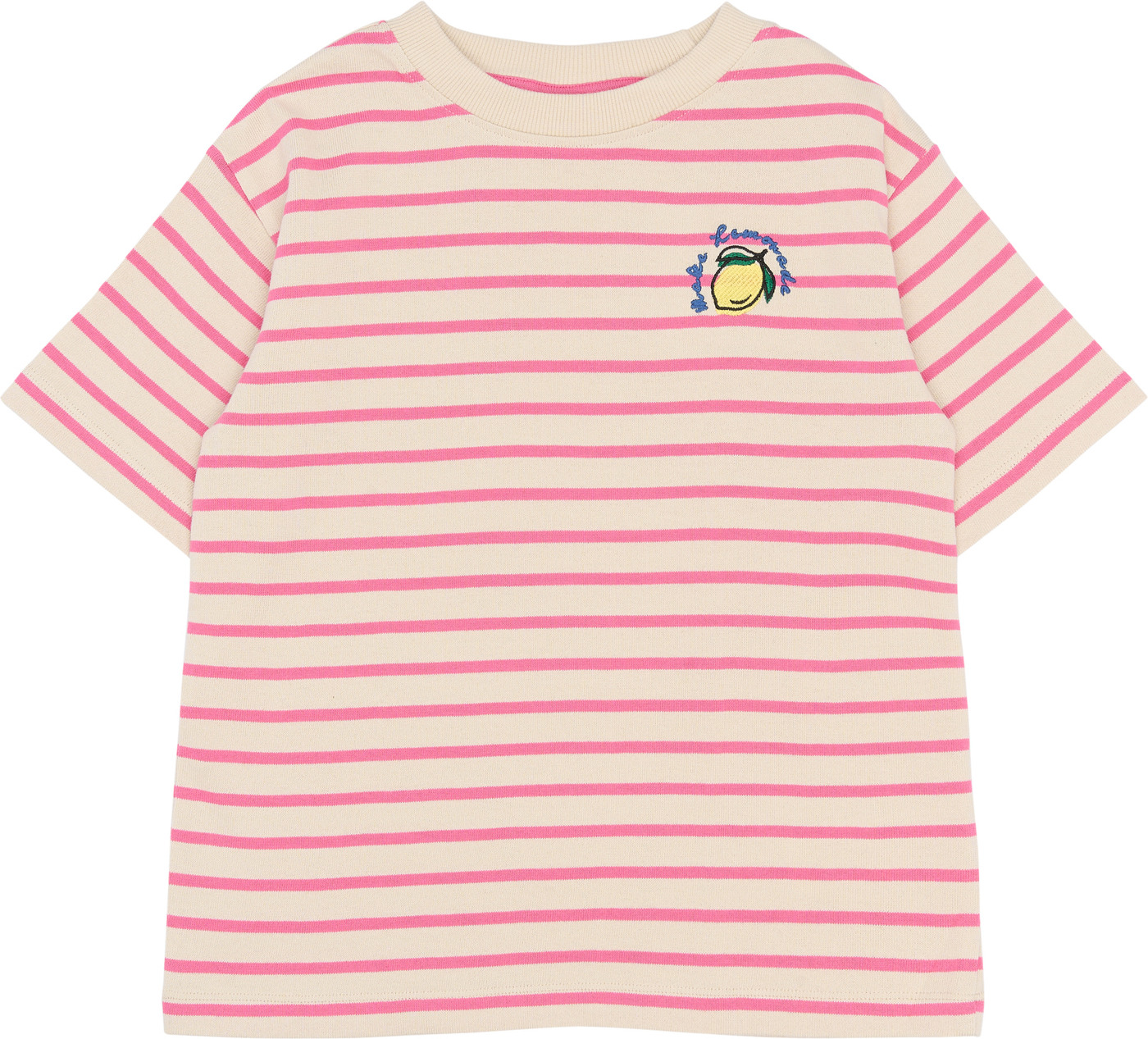 The New T-Shirt 'Sanny' aus 100% Baumwolle mit Streifen und Zitrone - Carmine Rose Striped