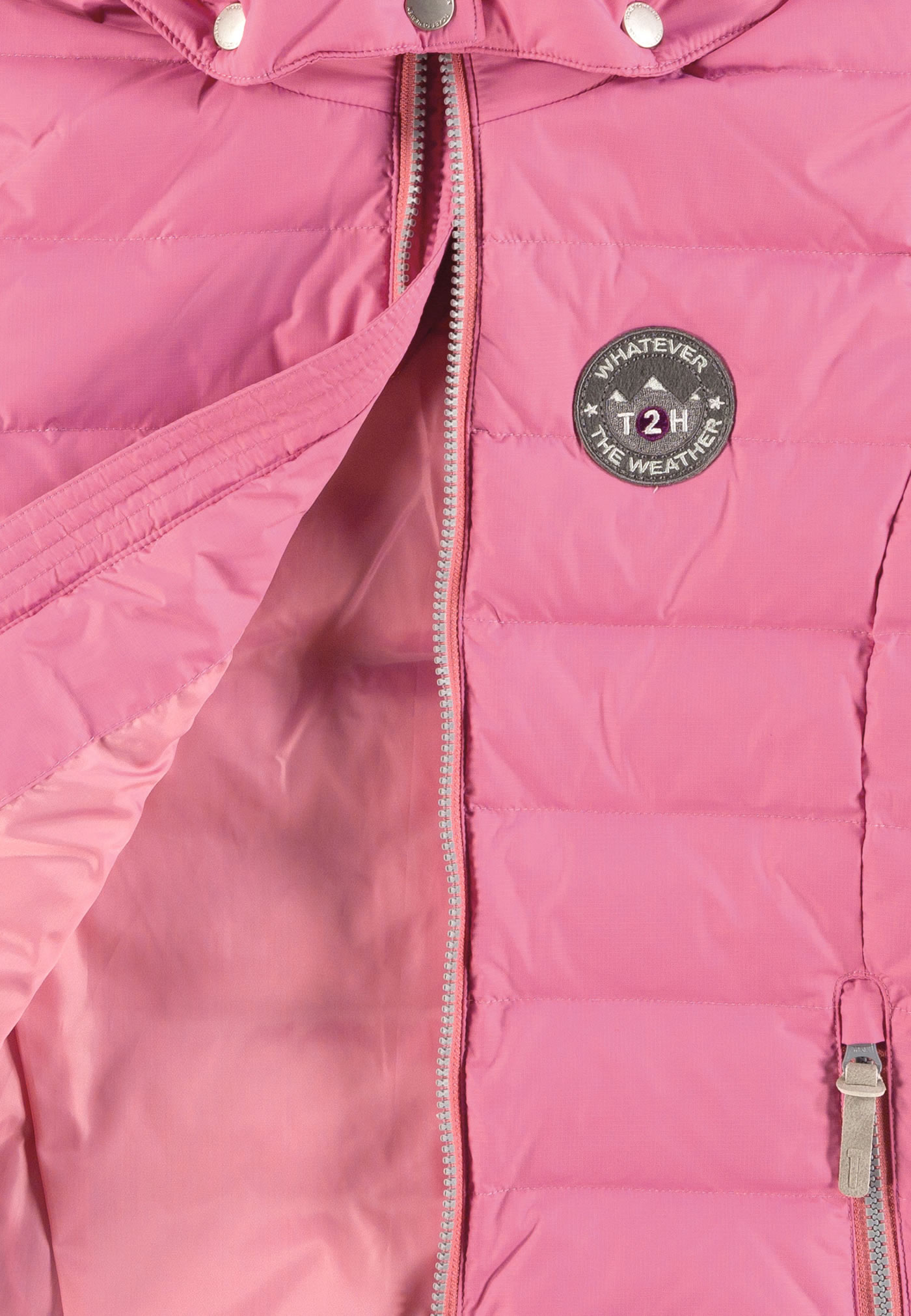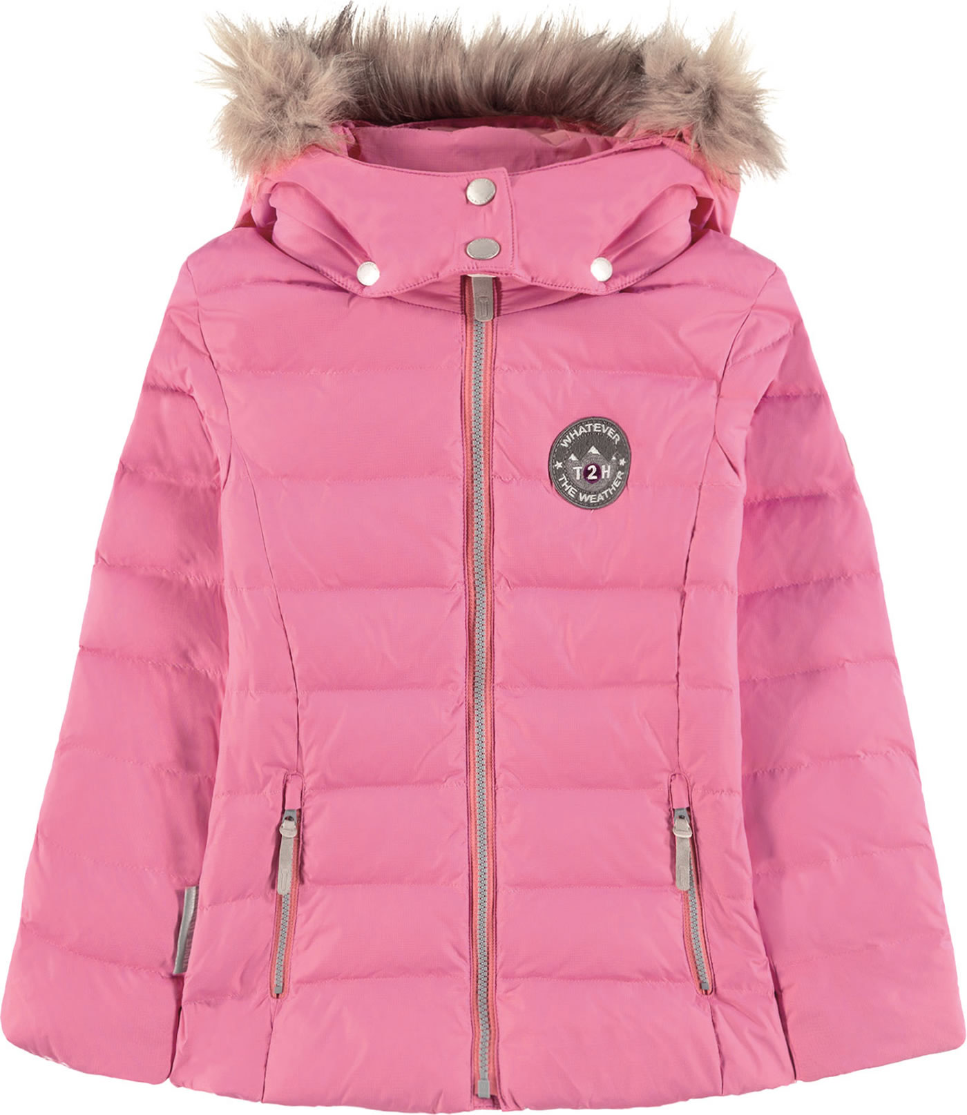 Schöne taillierte Daunenjacke in rosa mit abknöpfbarer Kapuze von TICKET TO HEAVEN für Mädchen. Das Fellimitat an der Kapuze ist ebenfalls abknöpfbar. Die atmungsaktive Jacke in gesteppter Optik ist angenehm leicht im Gewicht und zudem noch wind- und wasserdicht. Reflektierende Details sorgen für gute Sichtbarkeit. In den kalten Monaten hält die Jacke warm und trocken und wird so zu einem tollen modischen Begleiter.