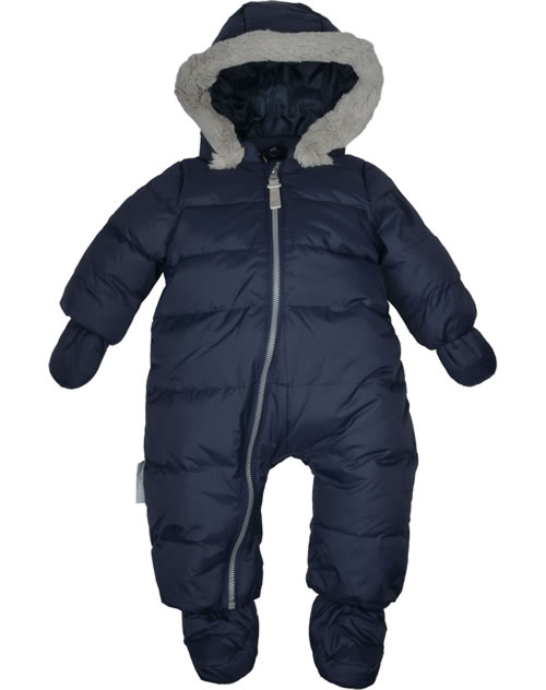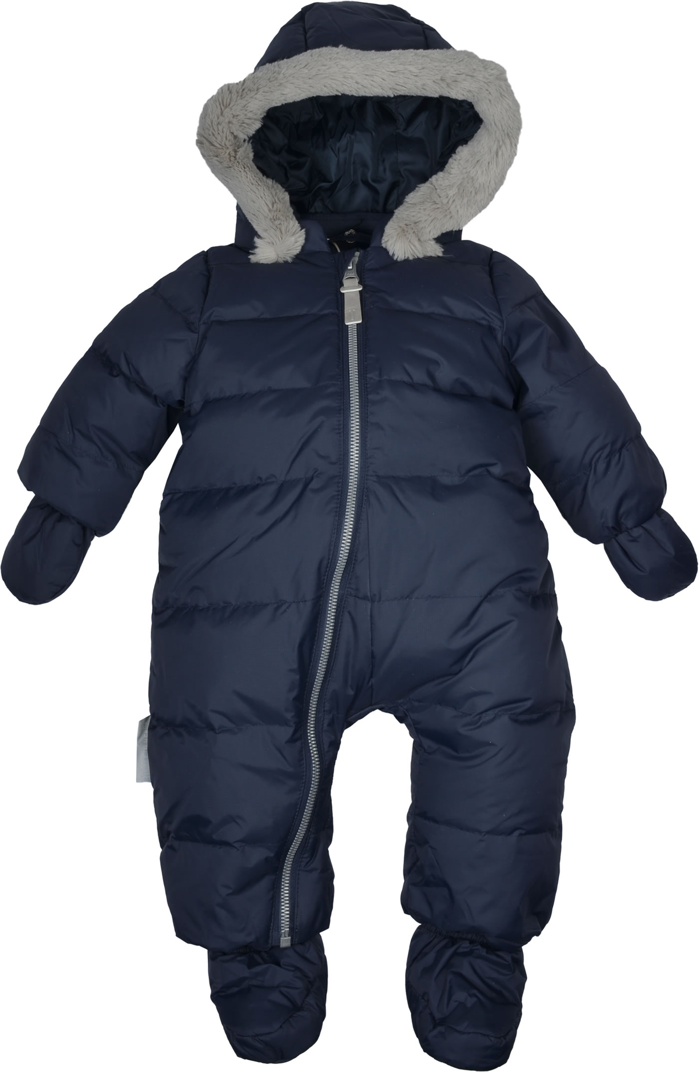 Warmer, atmungsaktiver Schneeanzug in dunkelblau für Mädchen von TICKET TO HEAVEN. Der Overall ist wind- und wasserdicht und hat abknöpfbare Handschuhe an den Ärmelbündchen. An den Beinenden befinden sich außerdem mit Fleece gefütterte Schuhe, die sich auch abknöpfen lassen. Der lange Reißverschluss ermöglicht ein leichtes An-und Ausziehen. Mit dem gesteppten Overall kommen die Kleinsten warm durch die kalte Jahreszeit.