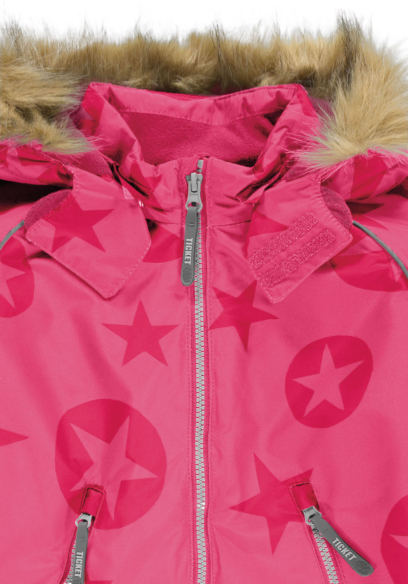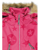 Warmer, atmungsaktiver Schneeanzug in pink und schwarz und tollem Sternen-Print von TICKET TO HEAVEN für Mädchen. Der Overall ist wind- und wasserdicht und hat in der Weite verstellbare Ärmelbündchen. Die Kapuze mit Fellbesatz ist abknöpfbar. Die Innenseite ist warm gefüttert und die Beine haben abknöpfbare Fußstege, so bleibt alles da wo es hingehört. Die langen Reißverschlüsse ermöglichen ein leichtes An-und Ausziehen. Reflektierende Details sorgen für die nötige Sichtbarkeit an trüben Tagen. Skifahren, Schlittenfahren... oder ganz einfach lange Spieleinheiten im Schnee - dieser Schneeanzug ist für anspruchsvolle Aktivitäten geeignet. So steht ausgiebigem Winter-Spaß nichts im Wege!