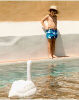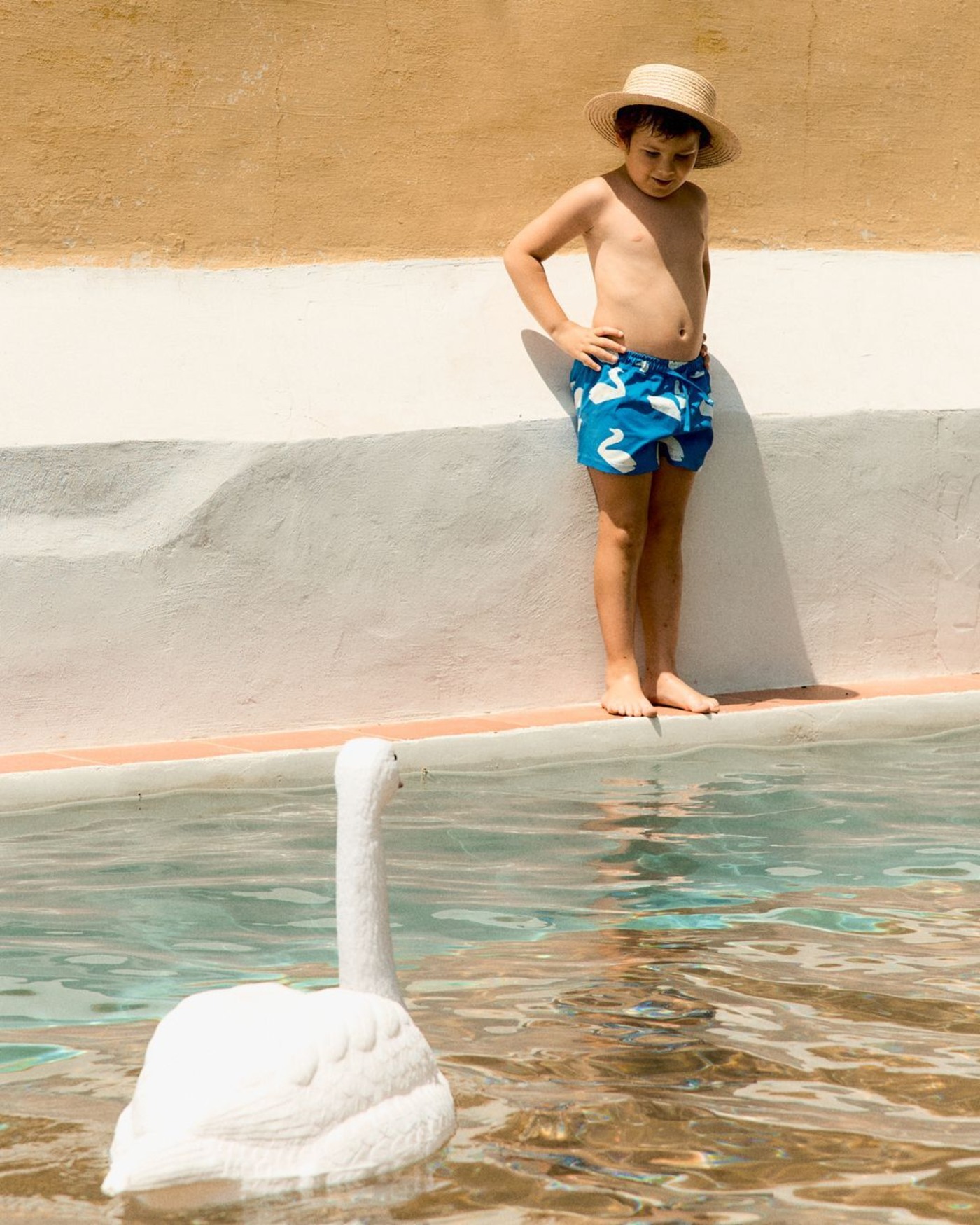 Diese bezaubernde Bade-Shorts vom spanischen Label Tiny Cottons begeistert mit den vielen Schwänen rundum. 🦢