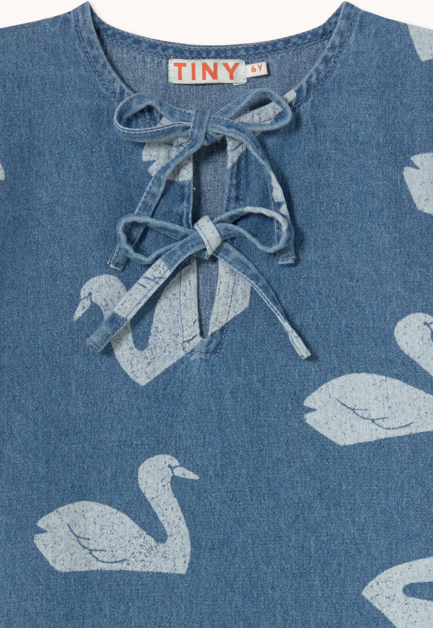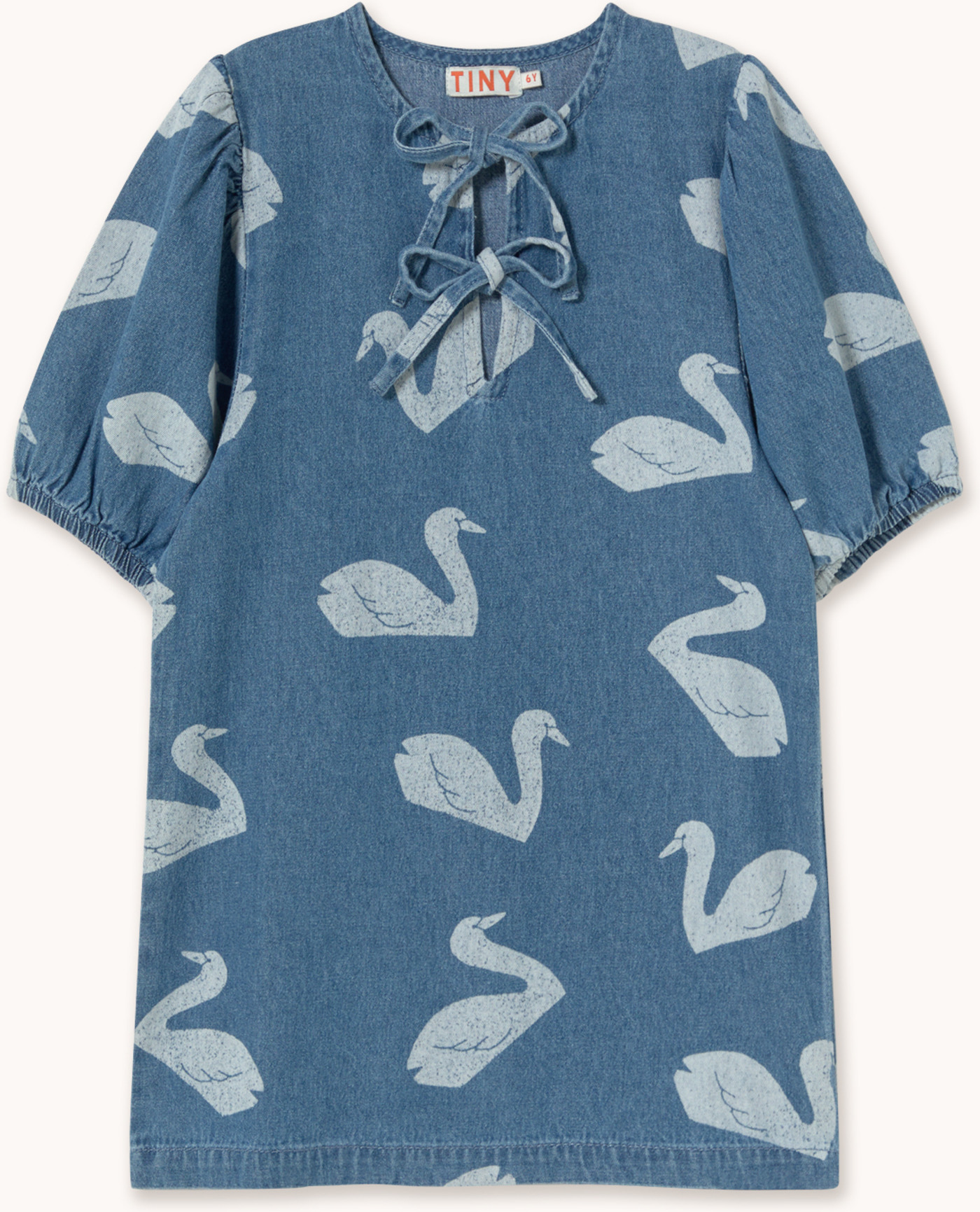 Tiny Cottons Jeans-Kleid aus 100 % Baumwolle mit Schwänen - Medium Wash Denim