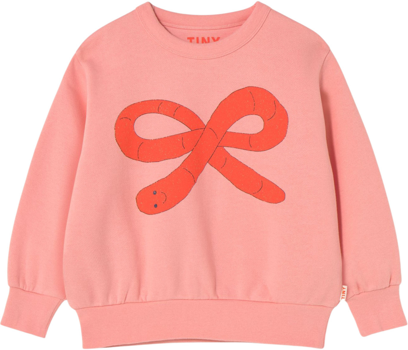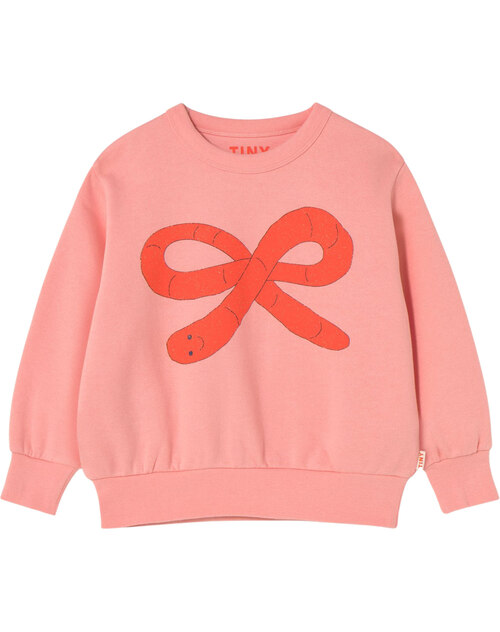 Dieses coole und hochwertige Sweatshirt von Tiny Cottons ist auf der Vorderseite bedruckt mit einem Wurm, der sich als Schleife gekringelt hat. 🪱 🎀