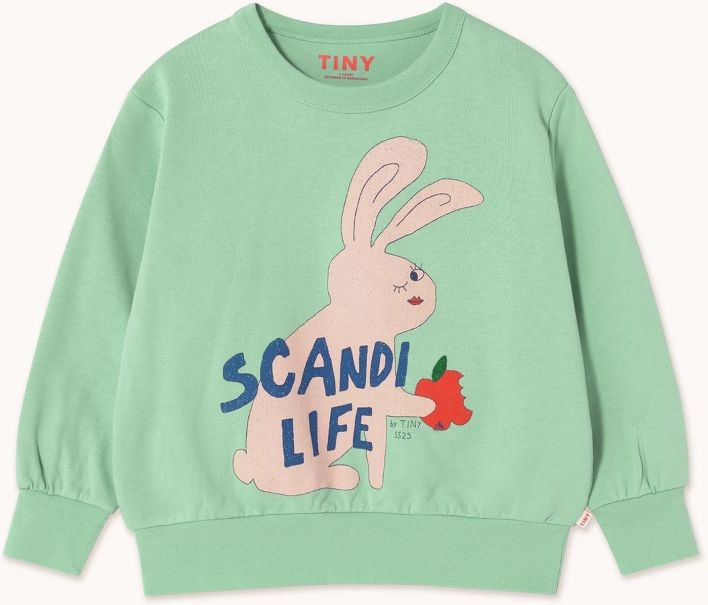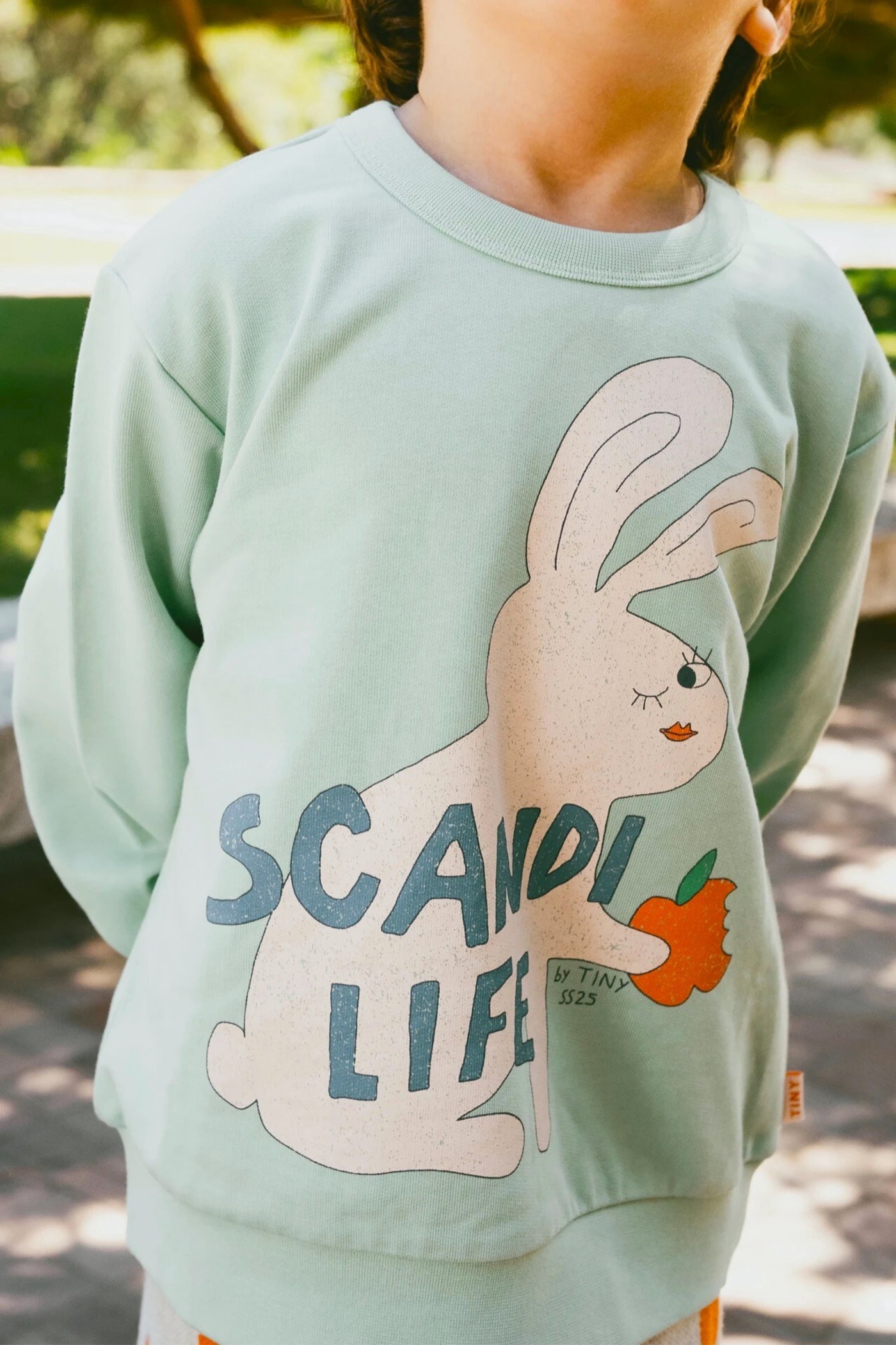 mit seinem Apfel essenden, zwinkernden Hasen Print und dem "Scandi Life" Aufdruck garantiert zum neuen Lieblingsteil.
