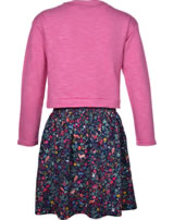 Kleid mit Rundhals und langen Ärmeln von TOM JOULE. Das Kleid hat einen Lagen-Look und ist dadurch schön warm. Das Oberteil besteht aus einem pinkfarbenem Jersey-Stoff und darüber wärmt geringelter Sweat-Stoff. Der Rock aus Swetstoff mit tollem Wald-Motiv hat einen weiten Schnitt und bietet viel Bewegungsfreiheit. Das Gummibündchen in der Taille sorgt für einen perfekten Sitz. Ein schönes Detail ist das gestickte Eichhörnchen auf der Vorderseite.