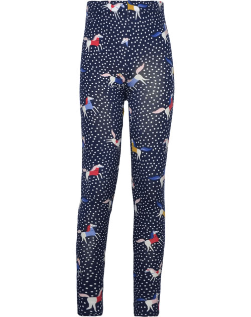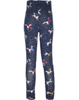 Hochwertige Leggins für Mädchen in dunkelblau von TOM JOULE. Besonders schön ist das Muster aus Punkten und tanzenden Pferden. Kleine Logo-Stickerei an dem linken Beinende. Die Leggins läst sich prima mit vielen Sachen kombinieren.