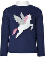 Dunkelblaues Shirt für Mädchen von TOM JOULE mit langen Ärmeln. Besonders schön ist das fliegende Pferd mit glitzerneder Mähne und Flügeln auf der Vorderseite. Das weiche Material sorgt für einen hohen Tragekomfort.