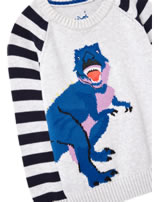 Toller Strickpullover mit gestreiften Raglanärmeln von TOM JOULE für Jungen. Ein toller Hingucker ist das Dinosaurier, der auf der Vorderseite prangt. Das Tom Joule-Logo befindet sich vorn linksbündig, sowie im Nacken. Der warme Strickpullover wird bestimmt schnell zu einem Lieblingsstück.
