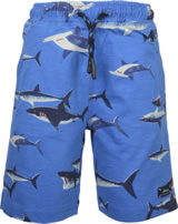 Sportliche Sweat-Shorts in blau mit tollen Hai-Motiven von TOM JOULE für den Sommer. Das hochwertige Material ist angenehm weich. Das Gummibündchen mit Zugband sorgt für einen optimalen Sitz. Kleines Firmenlabel auf der Vorderseite.