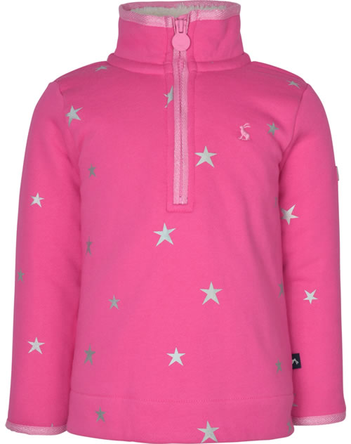 Teddyfell- Sweatshirt in pink von TOM JOULE für Mädchen. Das hübsche Sternenmuster zieht alle Blicke auf sich. Das Sweatshirt ist komplett mit kuscheligem Teddyfell gefüttert und somit der ideale Begleiter für Herbst und Winter. Das kleine Häschen-Logo ist auf der Vorderseite. Ein Reißverschluss erleichtert das An-und Ausziehen.