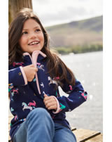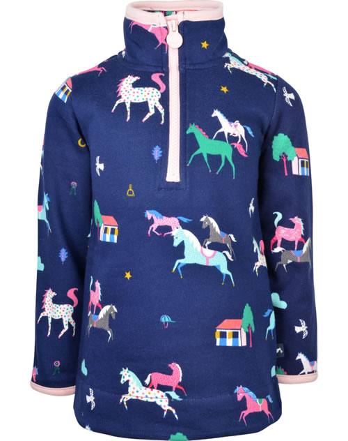 Hochwertiges Sweatshirt von TOM JOULE für Mädchen. Das Sweatshirt mit buntem Pferdemuster hat einen Stehkragen und lässt sich mit einem kurzen Reißverschluss schließen. Das Sweatshirt ist innen weich angeraut und sorgt so für angenehme Wärme.
