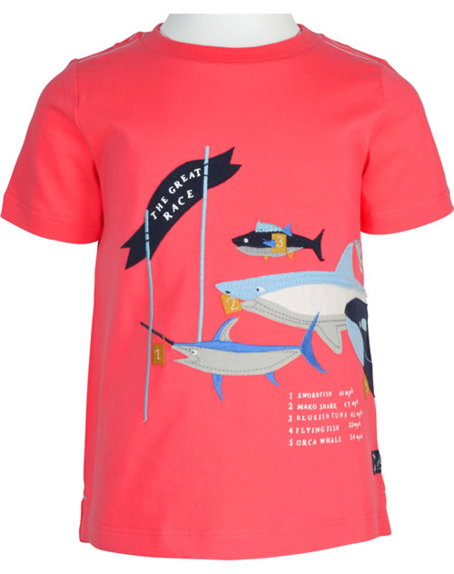 Kurzarm-Shirt von TOM JOULE für Jungen. Ein toller Hingucker ist das Hai-Rennen auf der Vorderseite. Das weiche Material sorgt für einen hohen Tragekomfort.