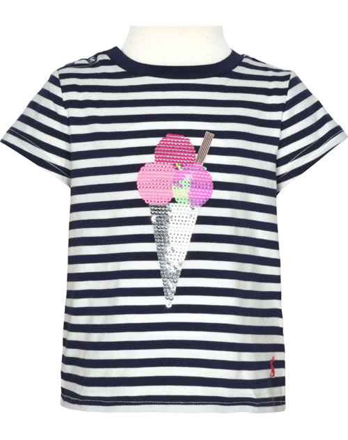 Gestreiftes Kurzarm-Shirt von TOM JOULE für Mädchen. Ein Hingucker ist das Eis aus glitzernden Pailletten auf der Vorderseite.. Das weiche Material sorgt für einen hohen Tragekomfort.