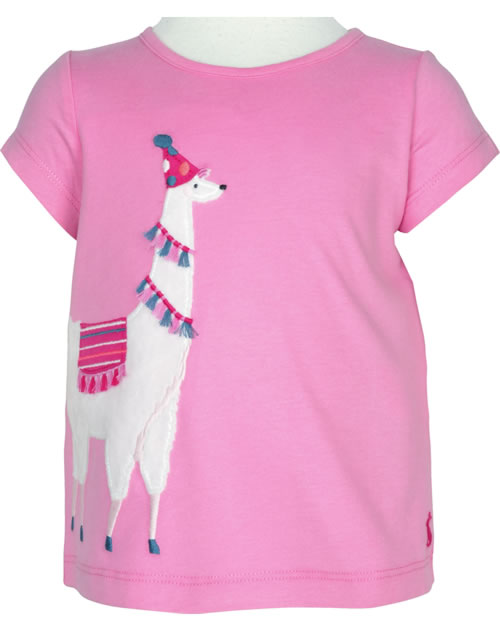 Pinkes Kurzarm-Shirt von TOM JOULE für Mädchen. Die Lama-Applikation macht es zu einem Hingucker. Es lässt sich prima kombinieren und sorgt durch sein weiches Material für einen hohen Tragekomfort. Auf der Rückseite mit einem kleinen Knopf im Nacken zu schliessen. Der kleine JOULES-Hase ist linksbündig aufgestickt.
