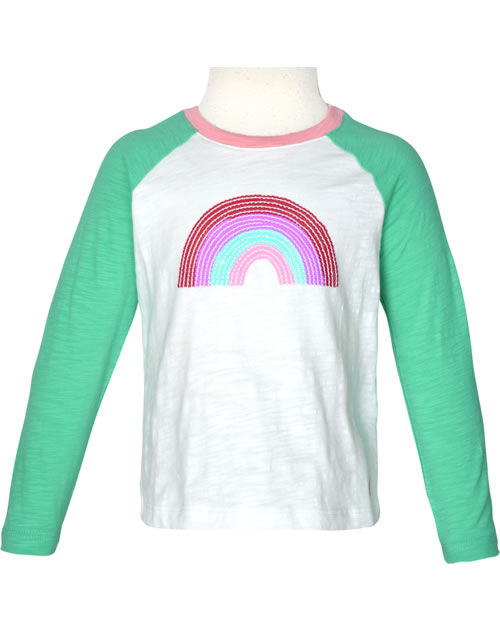 Langarm-Shirt von TOM JOULE für Mädchen. Das Shirt hat farblich abgesetzte Raglan-Ärmel und ein besonders schönes Detail ist der regenbogen aus aufgestickten Pailleten auf der Vorderseite. Das weiche Material sorgt für einen hohen Tragekomfort.