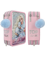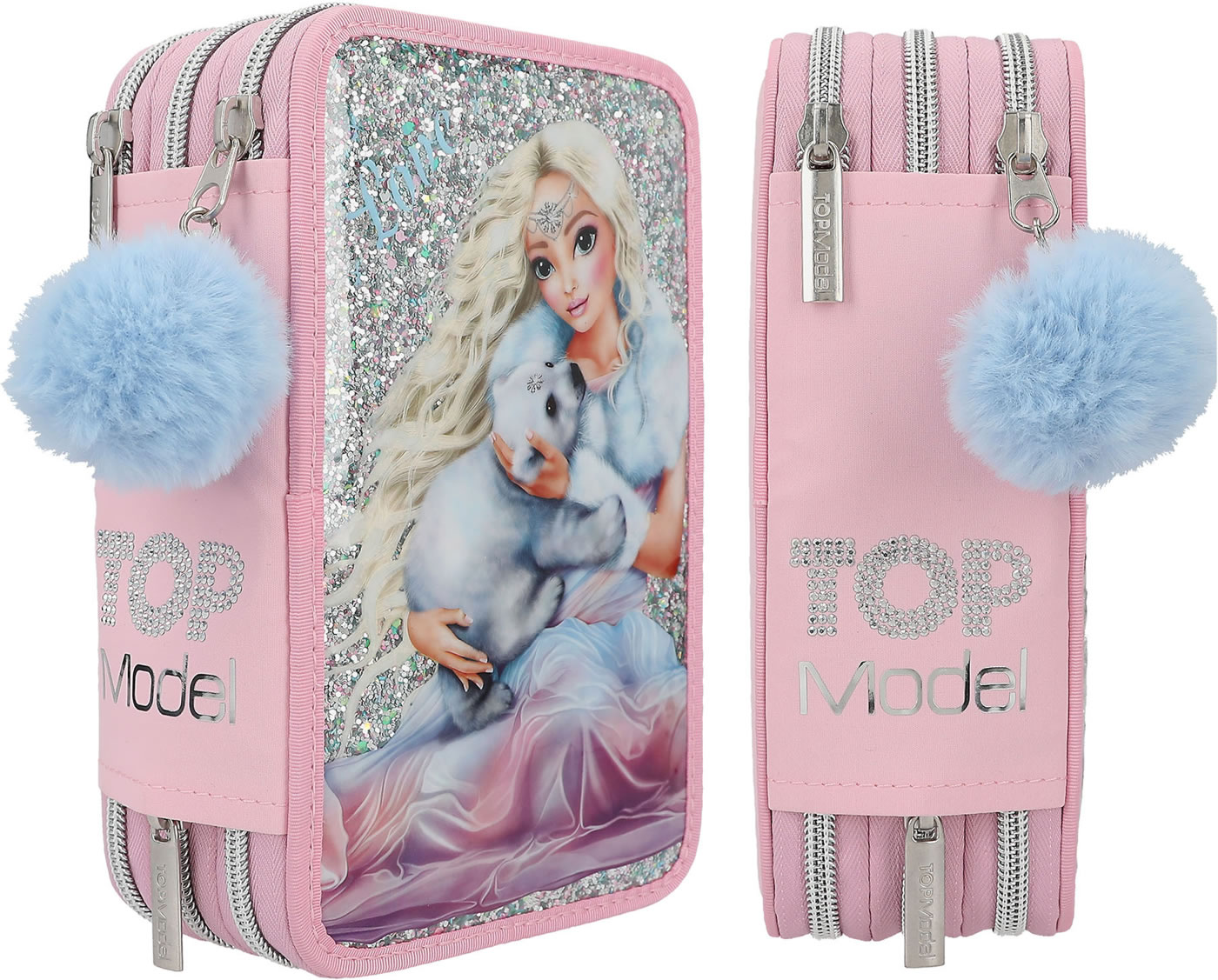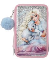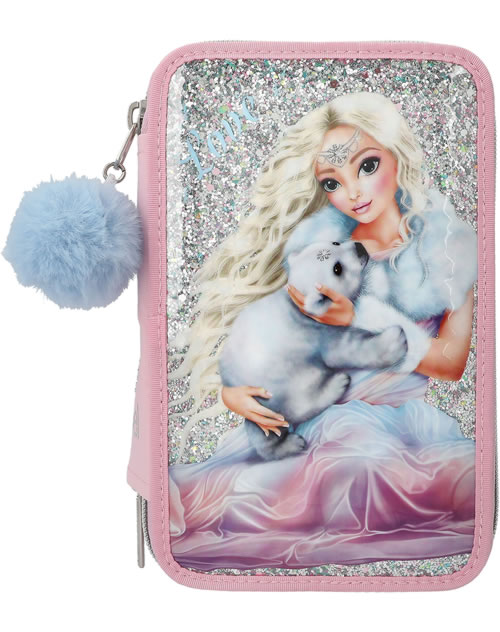 TOPModel Ice World Federmappe mit glitzerndem Model, Babyeisbär und eisblauem Kunstfell Pompon.