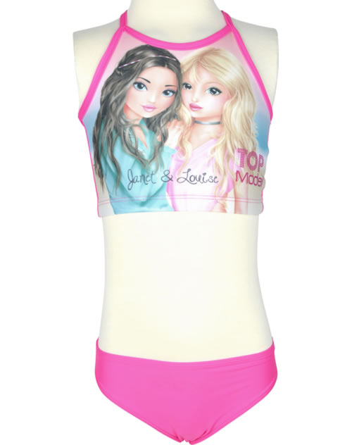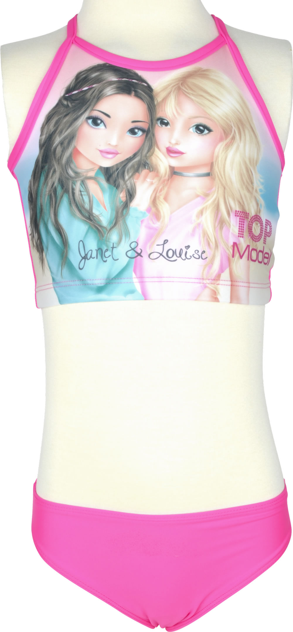 Trendiger Tankini in pink von TOPMODEL. Auf dem Oberteil sind die Model Janet und Louise abgebildet.