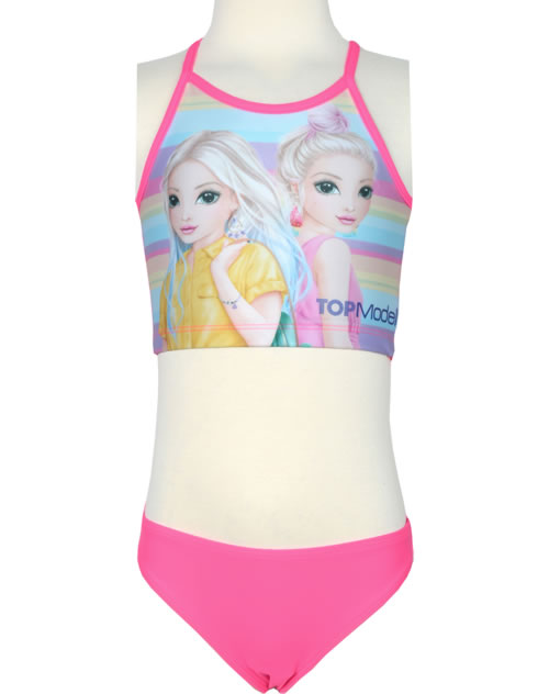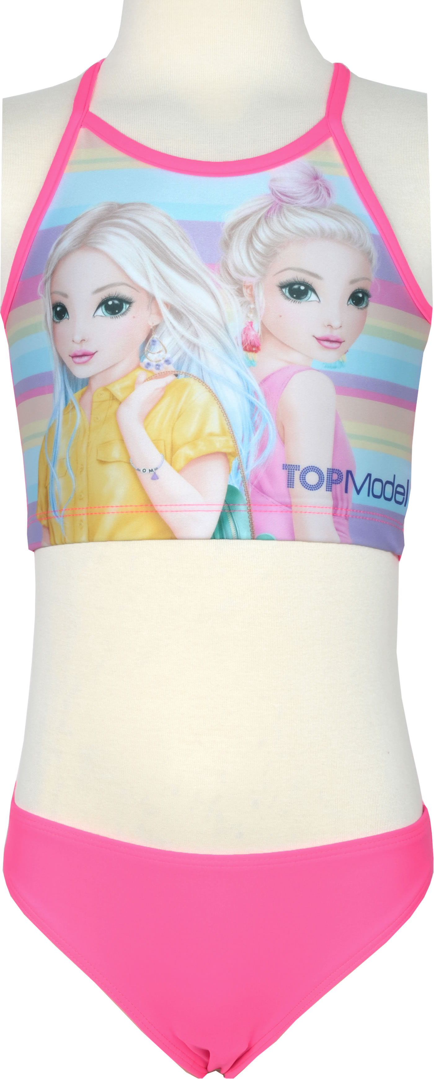 Trendiger Tankini in pink von TOPMODEL. Auf dem Oberteil ist das Model Jill & June abgebildet.