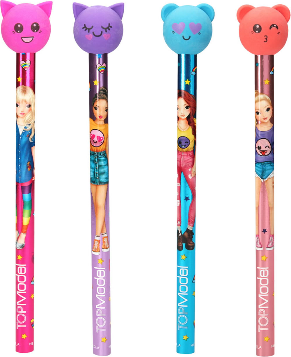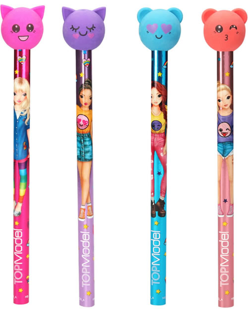 Dieser Bleistift hat den Radierer gleich dabei - in Form einer Figur mit lustigem Gesicht.