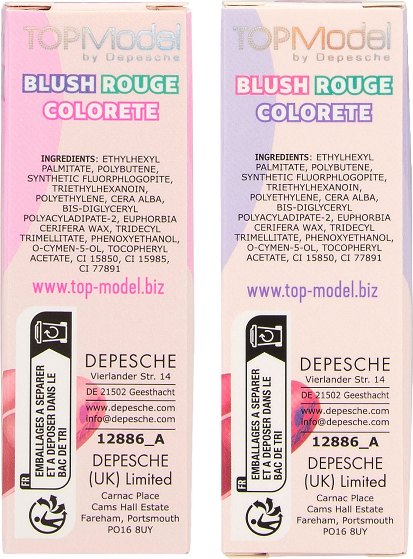 For rosy cheeks: The blush stick from TOPModel in a cute heart shape conjures up a natural color on the face. Available in two colors/designs: pink blush in pink stick with no hearts and pink blush in pink stick with panda and big hearts. Contents per blush stick: 9.5 g