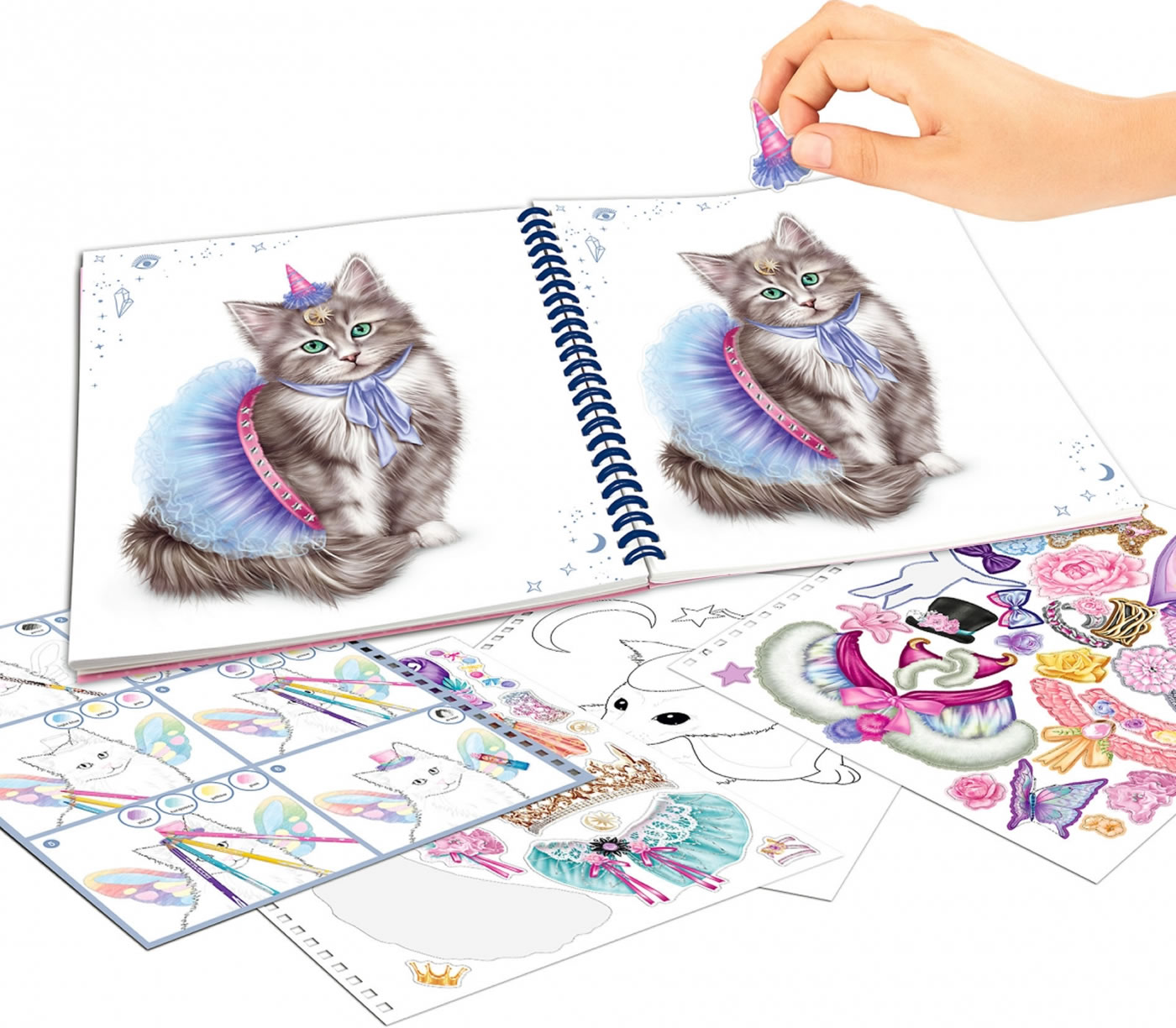 In diesem Malbuch findest du tolle Möglichkeiten, die Katzen zu stylen und zu gestalten. Viele Sticker und Vorlagen machen es dir leicht, aus deiner Katze ein TOPModel zu machen.