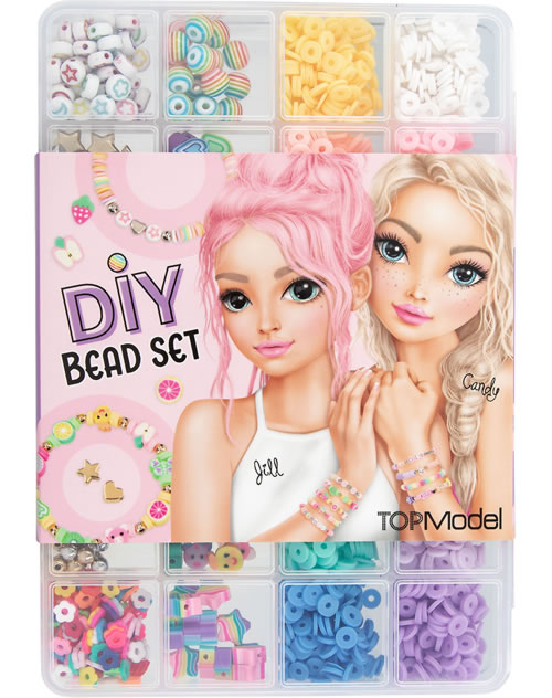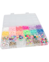 TOPModel-Perlen-Power! 20 verschiedene Arten bunter Perlen zum kreativen Gestalten von Armbändern und Ketten, sortiert in einer verschließbaren Kunststoff-Box. Mit dabei: 4 m transparentes Elastik-Band und 3 m elastisches Regenbogen-Band.
